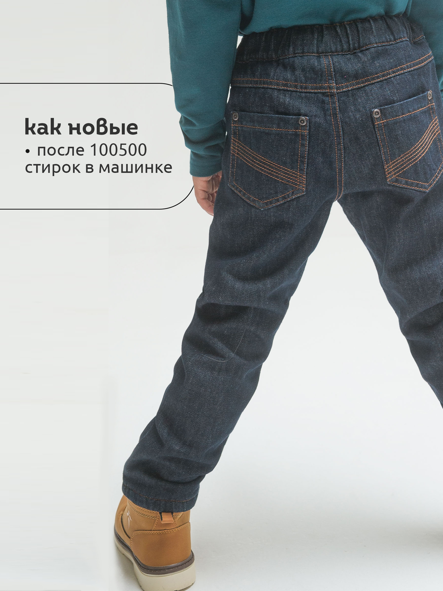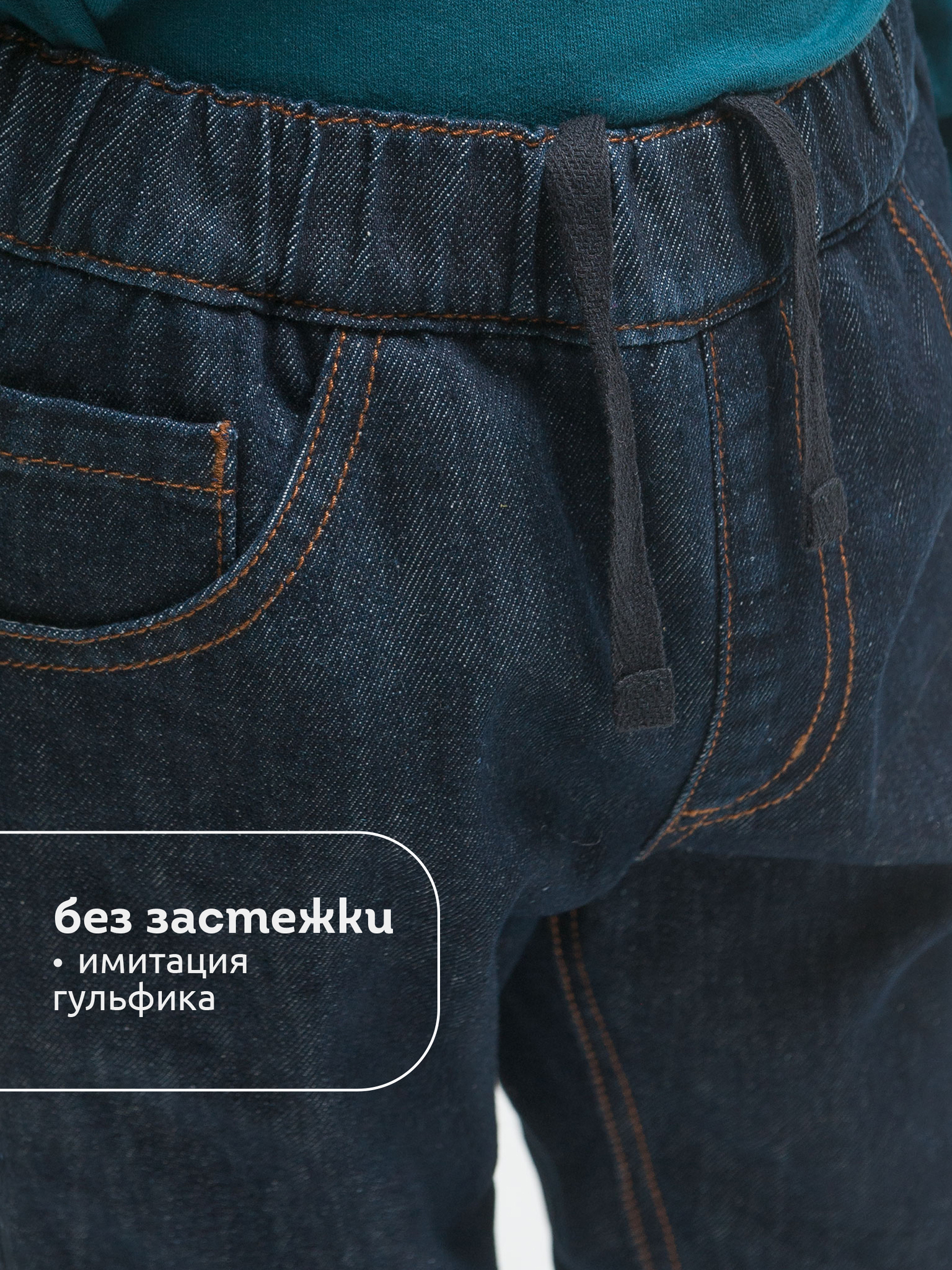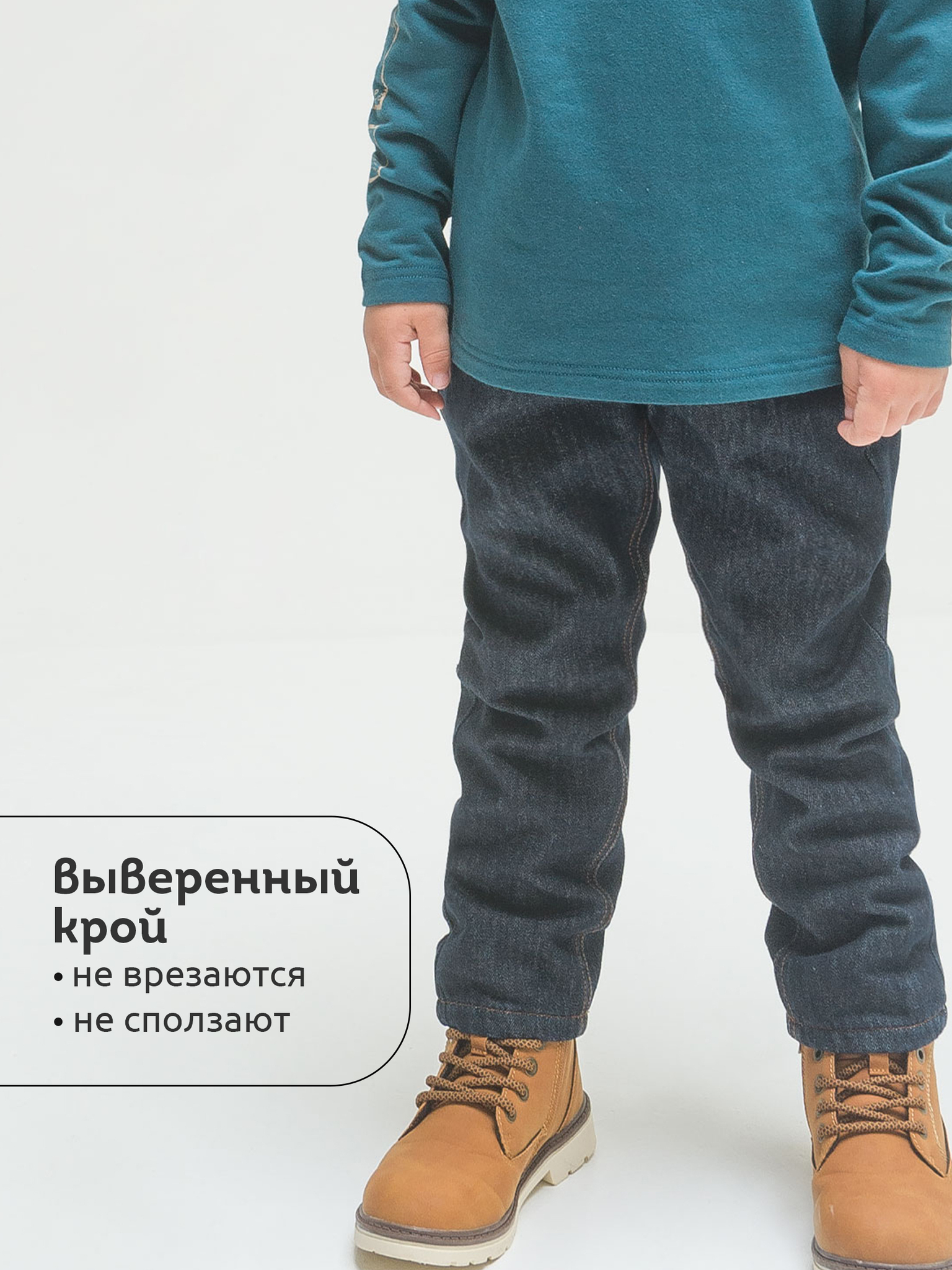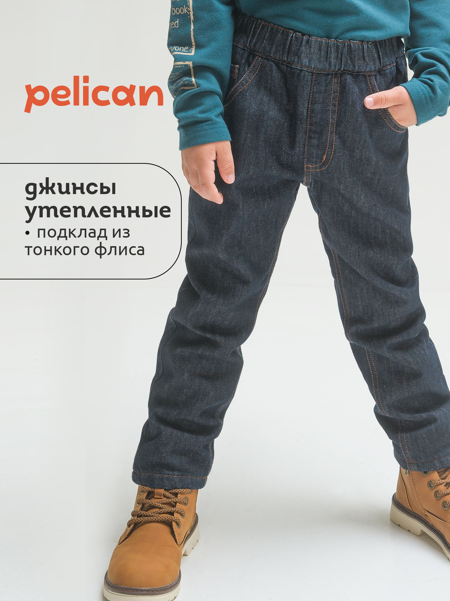 Утепленные джинсы на подкладе из флиса для мальчика. Основная ткань теплая, прочная, долго сохраняющая аккуратный вид, с большим содержанием хлопка – комфортно носить, легко ухаживать. Увеличенный объем, легкое сужение книзу – комфорт и удобство в динамике. Широкая резинка по линии талии отлично сидит и не натирает, объем регулируется внутренним шнуром – брюки не спадают, ремень не требуется. Имитация гульфика спереди. Удобные карманы для важных мелочей. Заклепки, декоративные строчки оранжевой нитью – нестареющая джинсовая классика. Джинсы прекрасно комбинируются с худи, толстовками, свитшотами. Незаменимы для создания стильного повседневного образа.