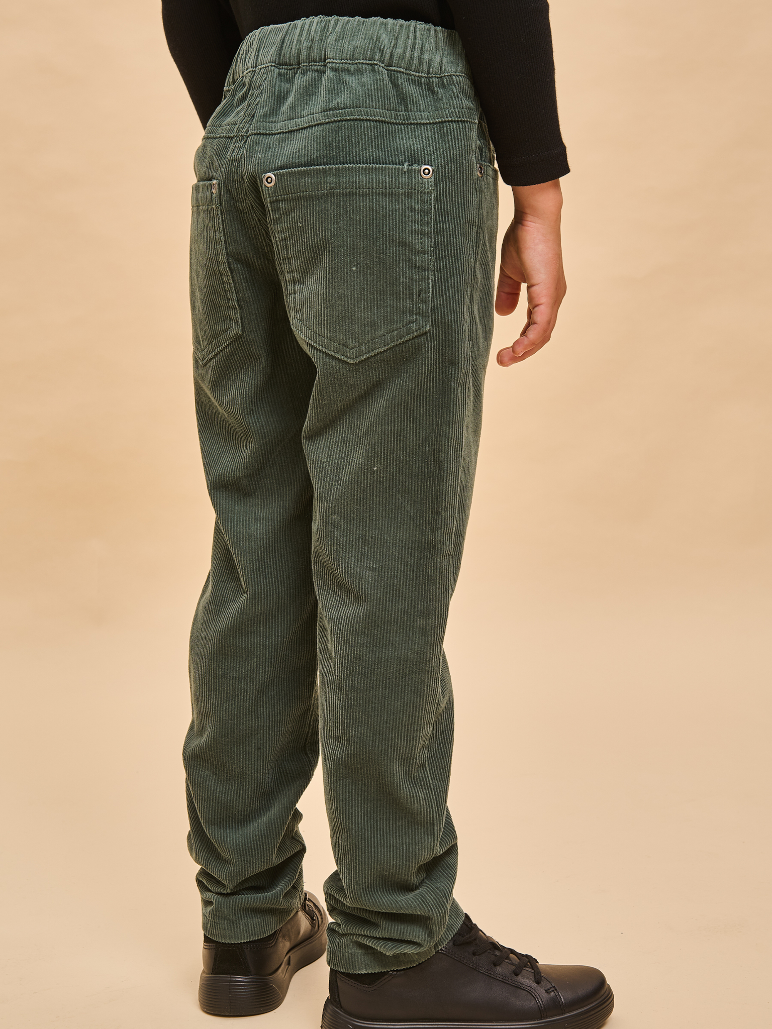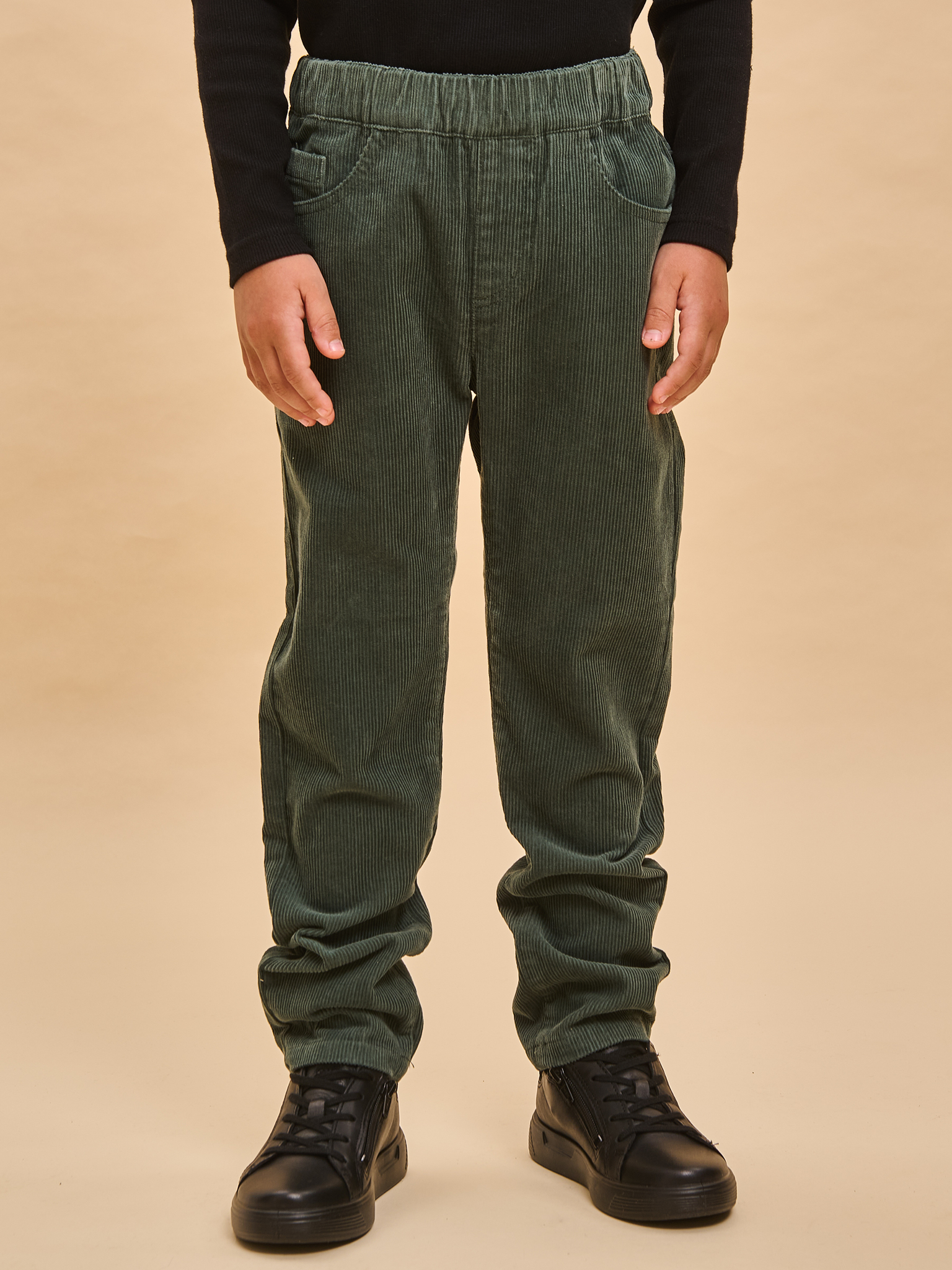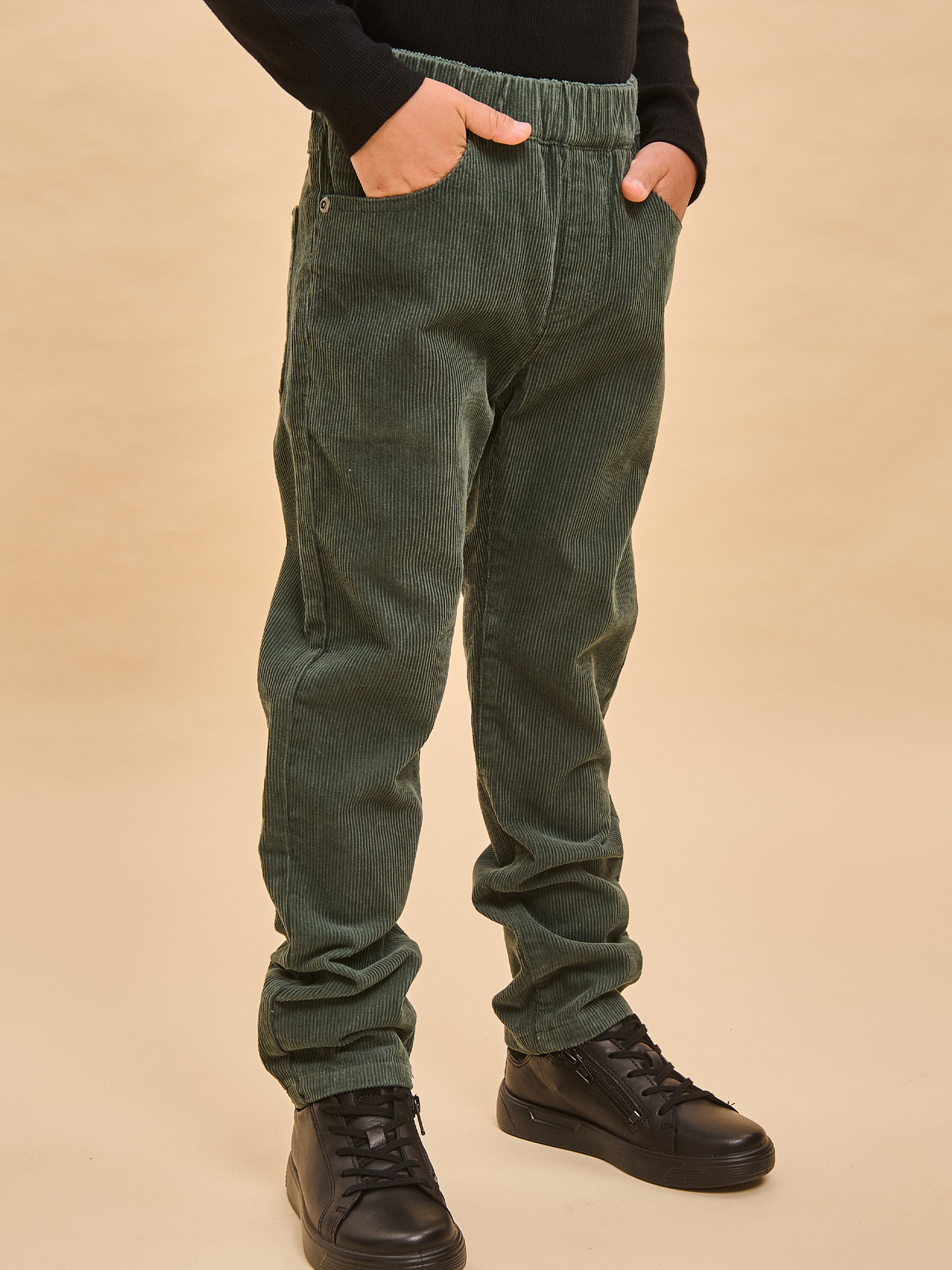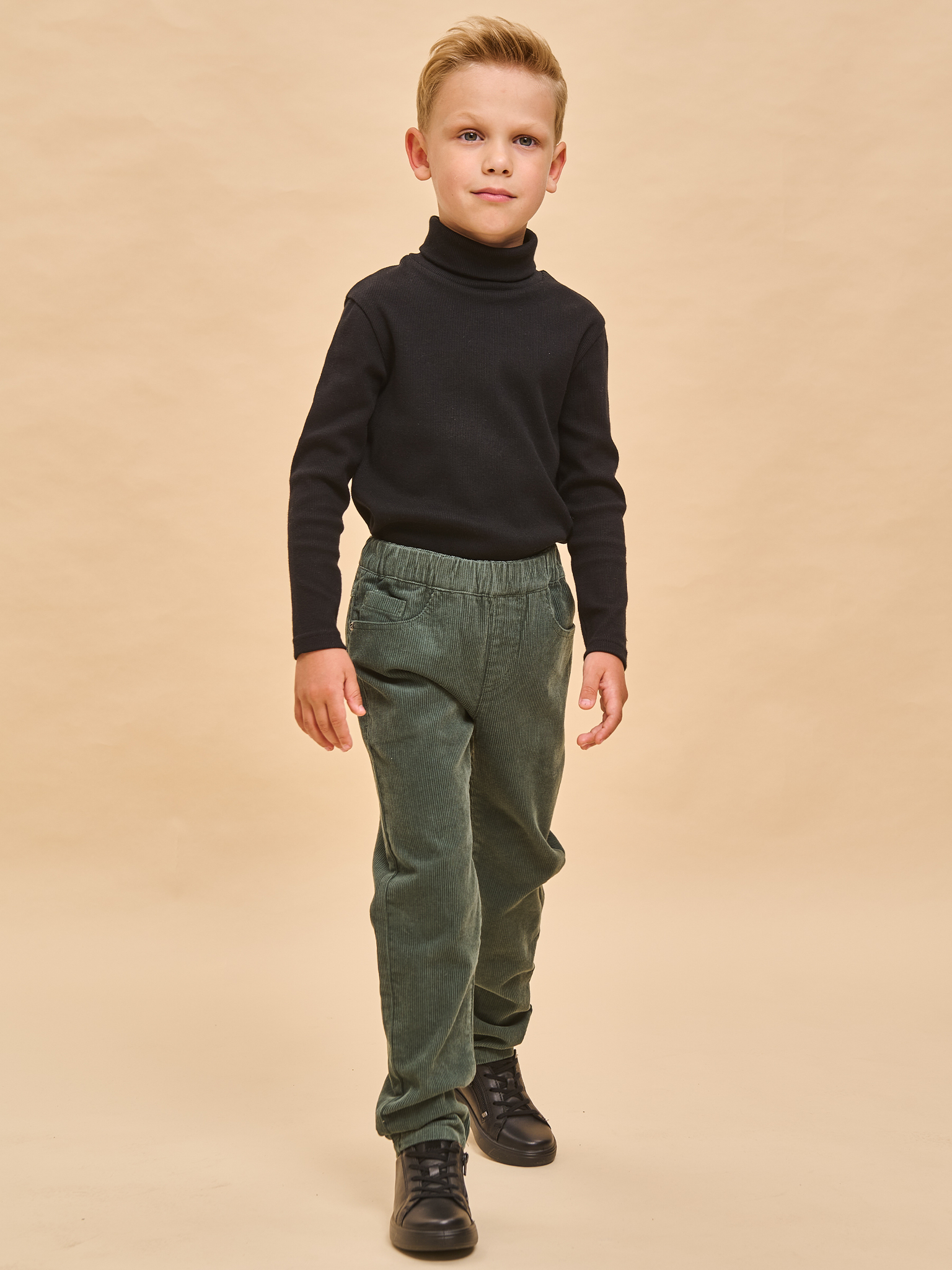 Вельветовые брюки с высокой посадкой для мальчика. Стильная современная модель – идеально сидит, отлично носится, всегда аккуратно выглядит. 100% хлопок в составе – ткань мягкая, дышащая, приятная на ощупь, прочная и простая в уходе. Широкая резинка по линии талии отлично сидит и не натирает, объем регулируется внутренним шнуром – брюки не спадают, ремень не требуется. Снизу можно сделать манжеты и отворачивать их по мере роста ребенка. Отлично комбинируются с футболкой, водолазкой, лонгсливом – одинаково хорошо с заправленной одеждой и навыпуск.