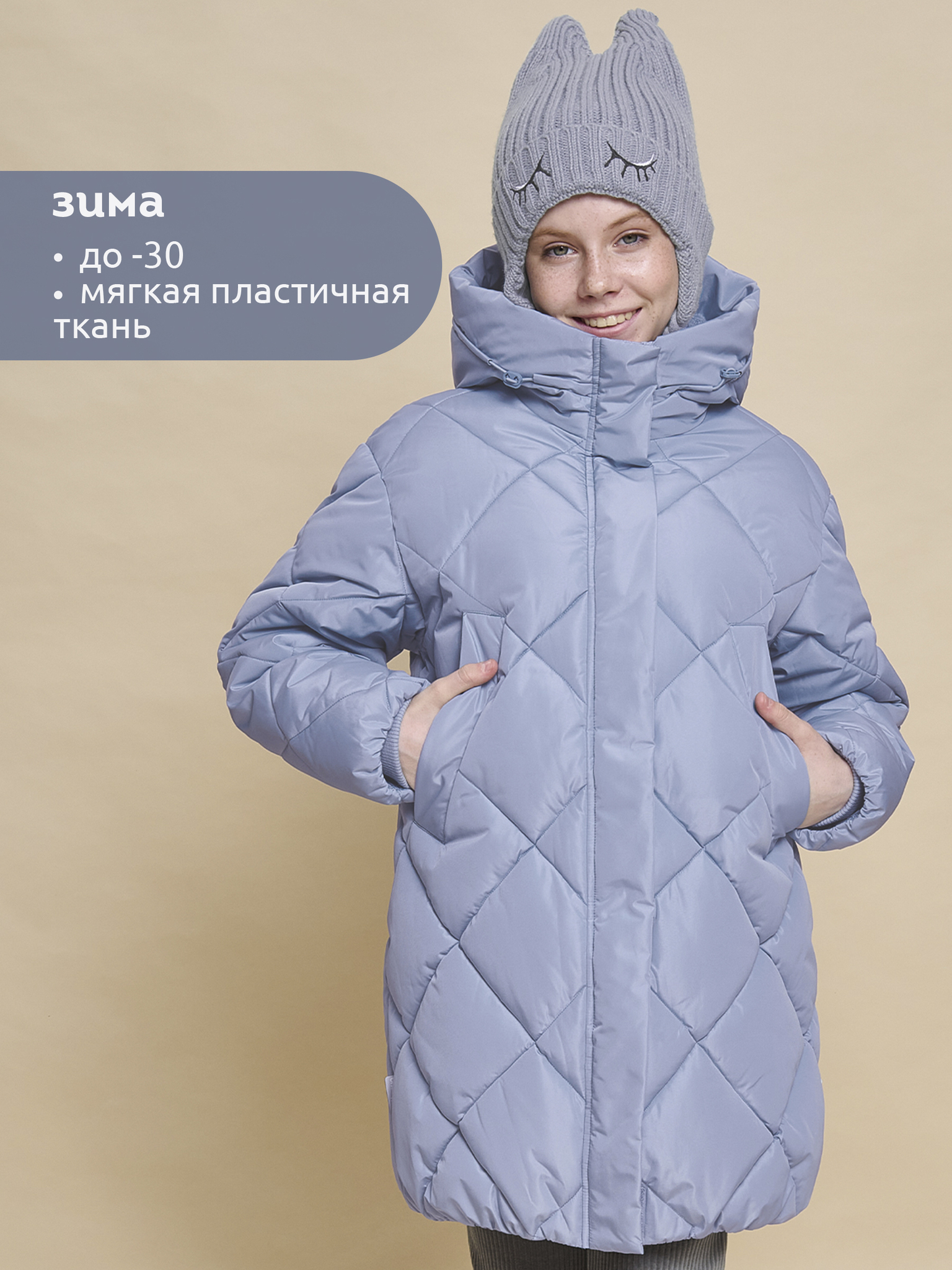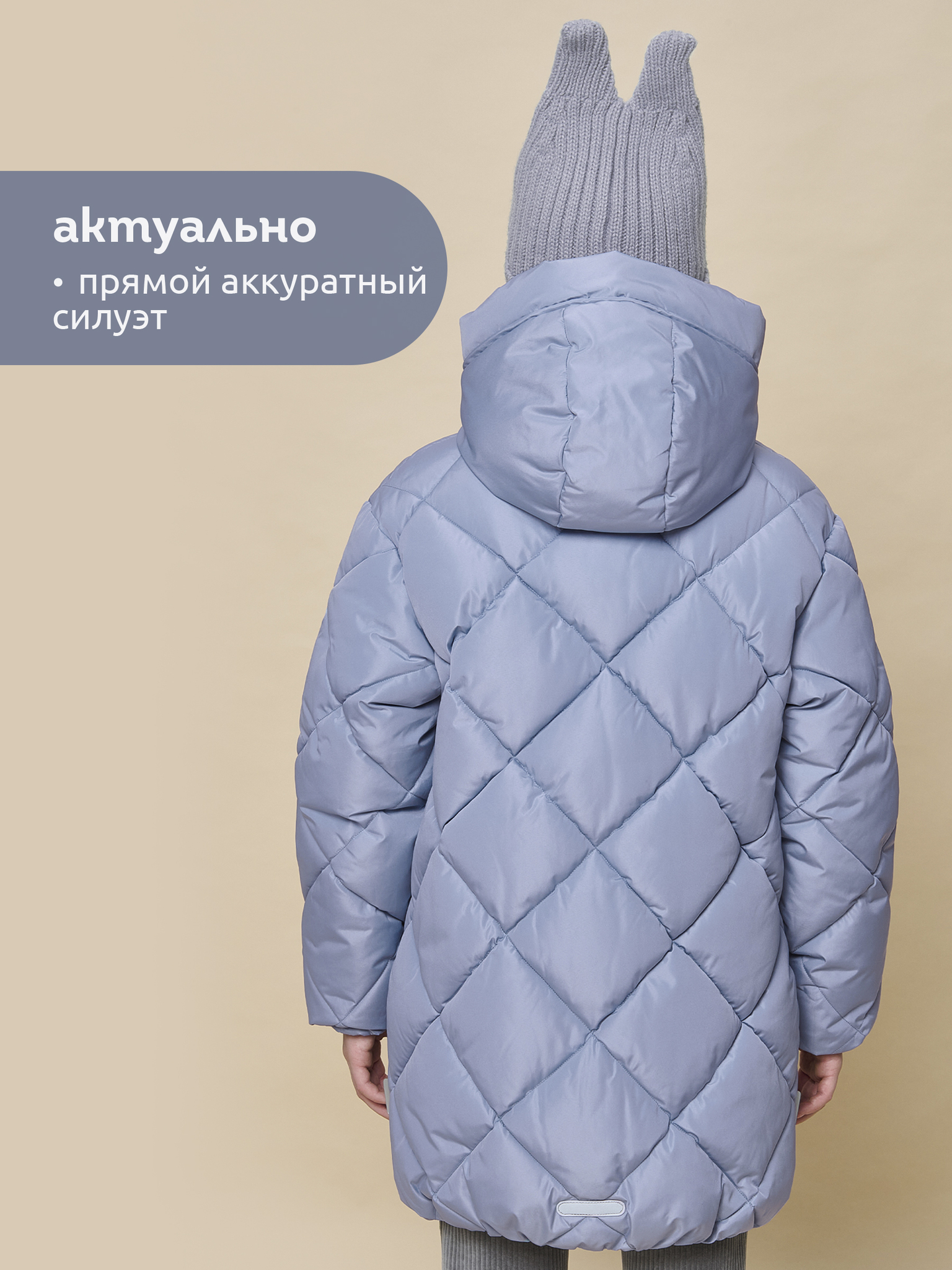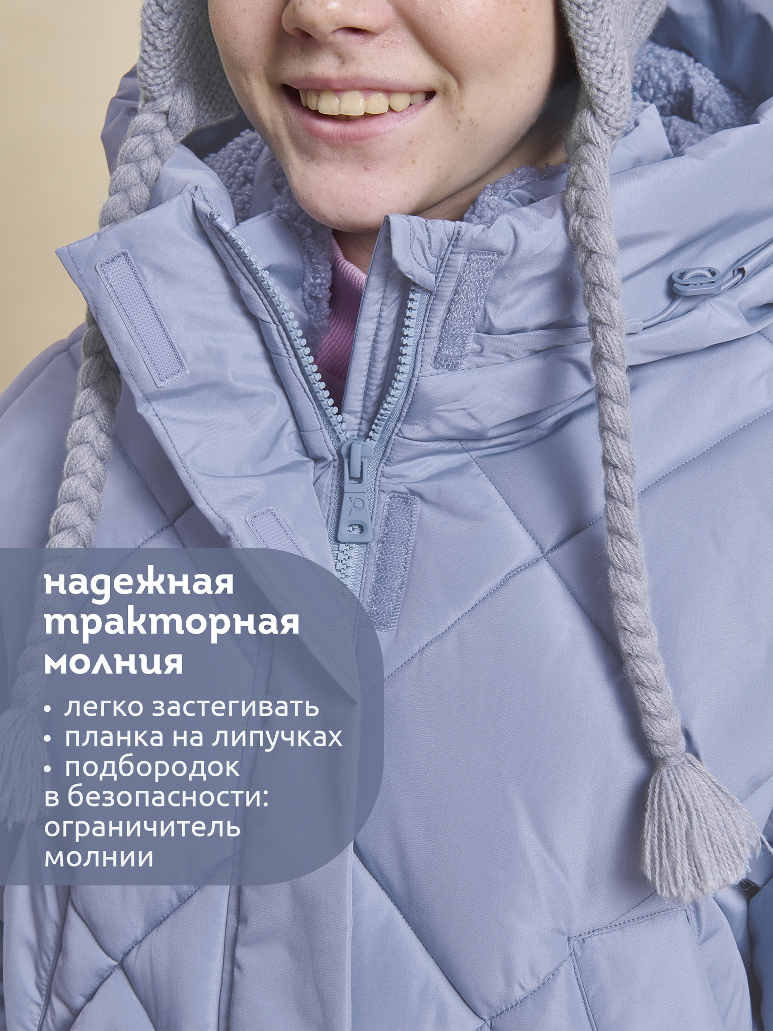Куртка зимняя для девочки длиной до середины бедра. Модная пухлая куртка-зефирка украшена актуальной стёжкой в виде квадратных ромбов. На внешнюю поверхность материала нанесена водоотталкивающая пропитка (DWR), она задерживает грязь и влагу снаружи — ребёнок не промокнет от снега, а комбинезон легко отстирается. Также есть дополнительная пропитка на внутренней стороне ткани — для более надёжной защиты от промокания. Капюшон с двумя швами, что обеспечивает анатомически правильную форму и комфортную посадку по голове. По краю капюшона вставка, которая также придаёт милый эффект пухлости. Предусмотрена регулировка объема капюшона эластиком с пластиковыми стопперами. Подкладка капюшона и внутренний воротник из нежного и тактильно приятного бербер-флиса с фактурой «барашек». Центральная застёжка на надежную пластиковую тракторную молнию. Куртка теплая — дополнительно, для защиты от ветра и холода, центральная молния закрыта ветрозащитной планкой на липучке (велькро). По низу рукавов внутренние манжеты из эластичной рибаны — они препятствуют задуванию ветра. Низ куртки и низ рукавов присобраны на широкую резинку с внутренней стороны, чтобы дополнительно придать изделию мягкий объём — пуховик напоминает лёгкое тёплое облачко. Можно также дополнительно уменьшить объем по низу куртки с помощью эластичного шнура по стопперами. По бокам удобные прорезные карманы, закрываются на магниты — легко открывать и закрывать даже в варежках или перчатках. Справа внутри карман на молнии для важных мелочей. Карманы утеплены флисом. В каждой куртке есть нейм-лейбл! Ребенок не потеряется и не потеряет куртку! В боковых швах и на спинке расположены светоотражающие элементы — безопасность в тёмное время суток. Изделие неприхотливо в уходе. Модель без принта. Куртка с наполнителем из полиэстера — она тёплая, легко стирается, быстро сохнет, сохраняет отличную форму и цвет надолго. Подкладка из мягкого и тёплого флиса. Отличная куртка для девочки дошкольного и младшего школьного возраста, а также девочки-подростка. Идеальная, тёплая и красивая куртка на зиму. Рекомендуемый температурный режим: не ниже минус 30 градусов. Утеплитель: экопух. Зимний пуховик подходит для носки в детский сад, школу, для прогулок и активного зимнего отдыха, игр на свежем воздухе. Помните о правильном уходе за изделием: рекомендуется стирать при температуре не выше 30 °C, без предварительного замачивания, с изнанки. Это поможет сохранить качество и цвет куртки на длительное время. Не забывайте о выборе правильного размера. Используйте таблицу размеров на фотографии, чтобы выбрать подходящий вариант для вашей девочки. Обратите внимание, что цвет товара на экране вашего устройства может отличаться от реального.