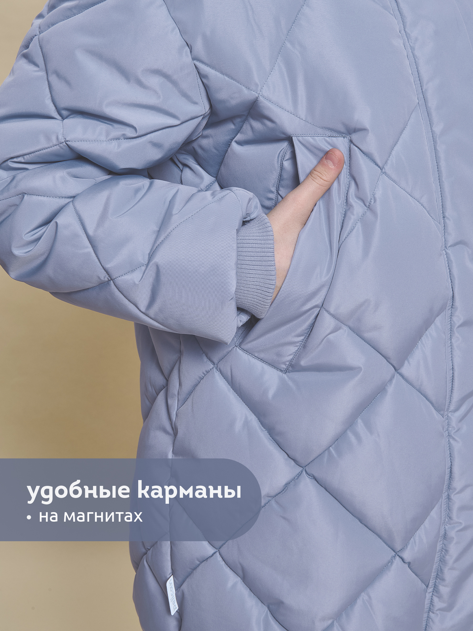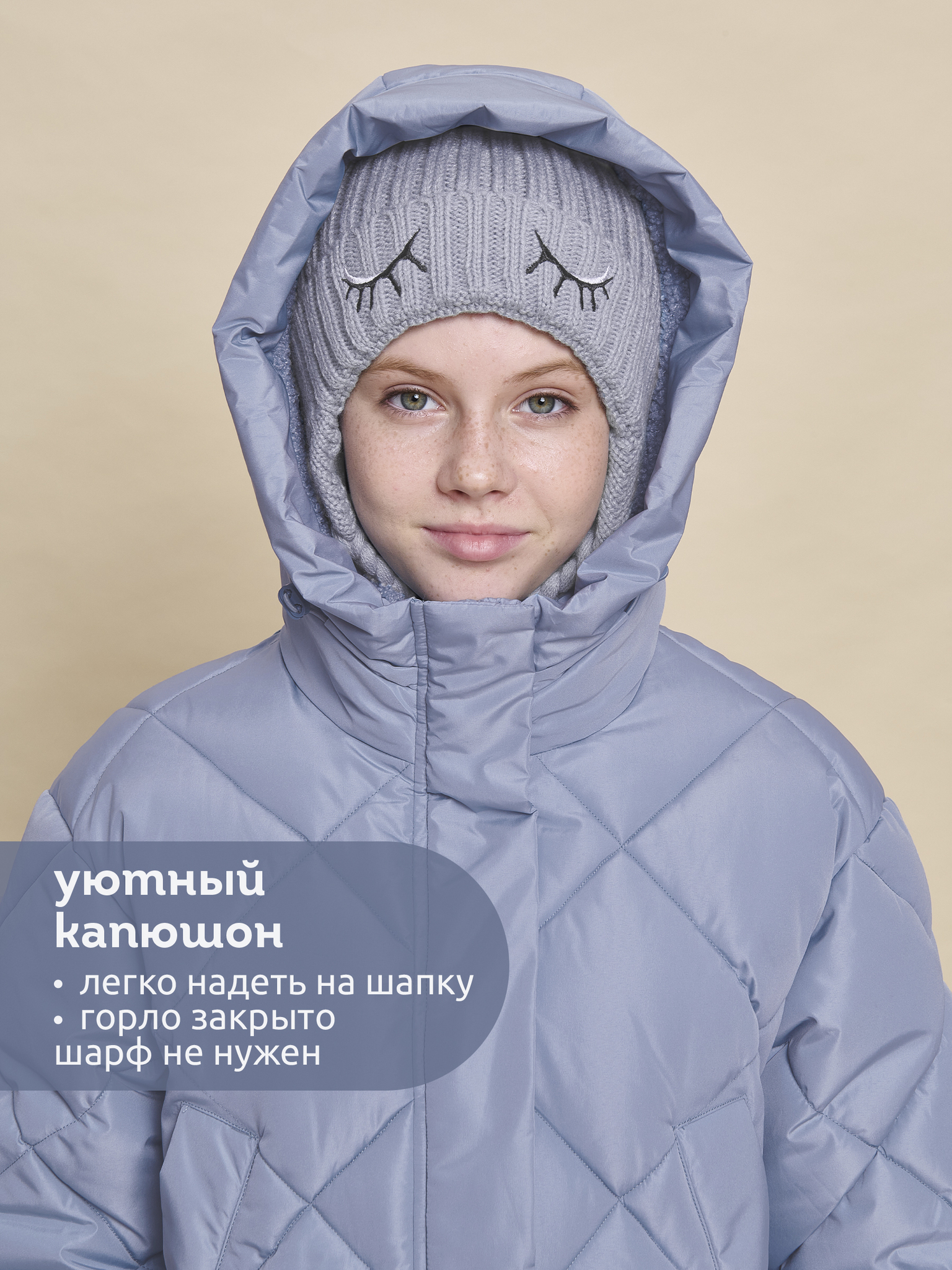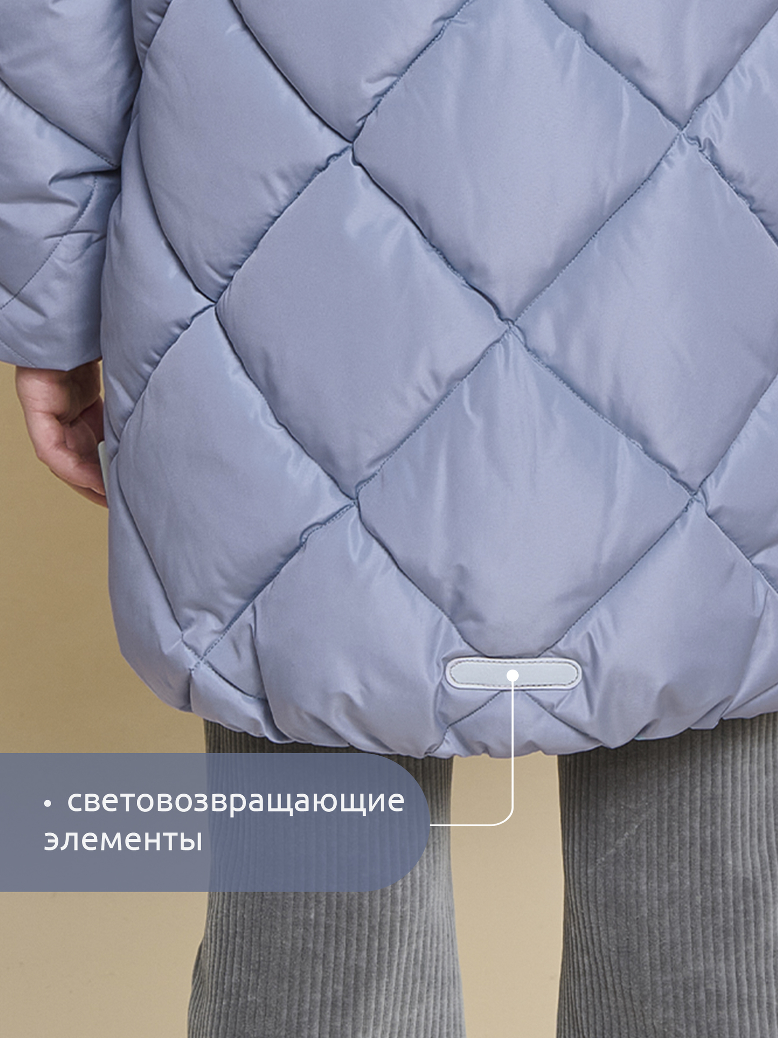 Куртка зимняя для девочки длиной до середины бедра. Модная пухлая куртка-зефирка украшена актуальной стёжкой в виде квадратных ромбов. На внешнюю поверхность материала нанесена водоотталкивающая пропитка (DWR), она задерживает грязь и влагу снаружи — ребёнок не промокнет от снега, а комбинезон легко отстирается. Также есть дополнительная пропитка на внутренней стороне ткани — для более надёжной защиты от промокания. Капюшон с двумя швами, что обеспечивает анатомически правильную форму и комфортную посадку по голове. По краю капюшона вставка, которая также придаёт милый эффект пухлости. Предусмотрена регулировка объема капюшона эластиком с пластиковыми стопперами. Подкладка капюшона и внутренний воротник из нежного и тактильно приятного бербер-флиса с фактурой «барашек». Центральная застёжка на надежную пластиковую тракторную молнию. Куртка теплая — дополнительно, для защиты от ветра и холода, центральная молния закрыта ветрозащитной планкой на липучке (велькро). По низу рукавов внутренние манжеты из эластичной рибаны — они препятствуют задуванию ветра. Низ куртки и низ рукавов присобраны на широкую резинку с внутренней стороны, чтобы дополнительно придать изделию мягкий объём — пуховик напоминает лёгкое тёплое облачко. Можно также дополнительно уменьшить объем по низу куртки с помощью эластичного шнура по стопперами. По бокам удобные прорезные карманы, закрываются на магниты — легко открывать и закрывать даже в варежках или перчатках. Справа внутри карман на молнии для важных мелочей. Карманы утеплены флисом. В каждой куртке есть нейм-лейбл! Ребенок не потеряется и не потеряет куртку! В боковых швах и на спинке расположены светоотражающие элементы — безопасность в тёмное время суток. Изделие неприхотливо в уходе. Модель без принта. Куртка с наполнителем из полиэстера — она тёплая, легко стирается, быстро сохнет, сохраняет отличную форму и цвет надолго. Подкладка из мягкого и тёплого флиса. Отличная куртка для девочки дошкольного и младшего школьного возраста, а также девочки-подростка. Идеальная, тёплая и красивая куртка на зиму. Рекомендуемый температурный режим: не ниже минус 30 градусов. Утеплитель: экопух. Зимний пуховик подходит для носки в детский сад, школу, для прогулок и активного зимнего отдыха, игр на свежем воздухе. Помните о правильном уходе за изделием: рекомендуется стирать при температуре не выше 30 °C, без предварительного замачивания, с изнанки. Это поможет сохранить качество и цвет куртки на длительное время. Не забывайте о выборе правильного размера. Используйте таблицу размеров на фотографии, чтобы выбрать подходящий вариант для вашей девочки. Обратите внимание, что цвет товара на экране вашего устройства может отличаться от реального.