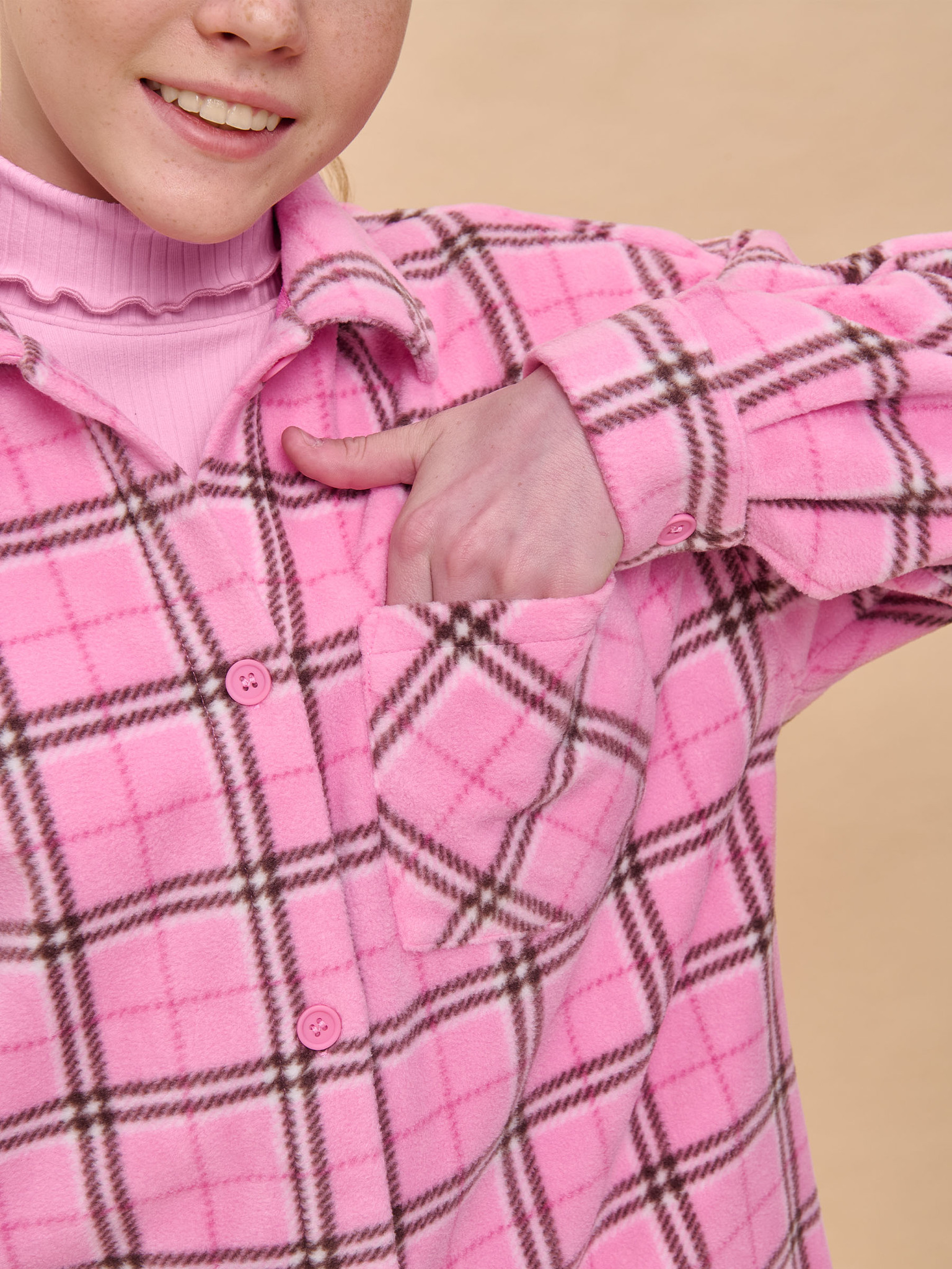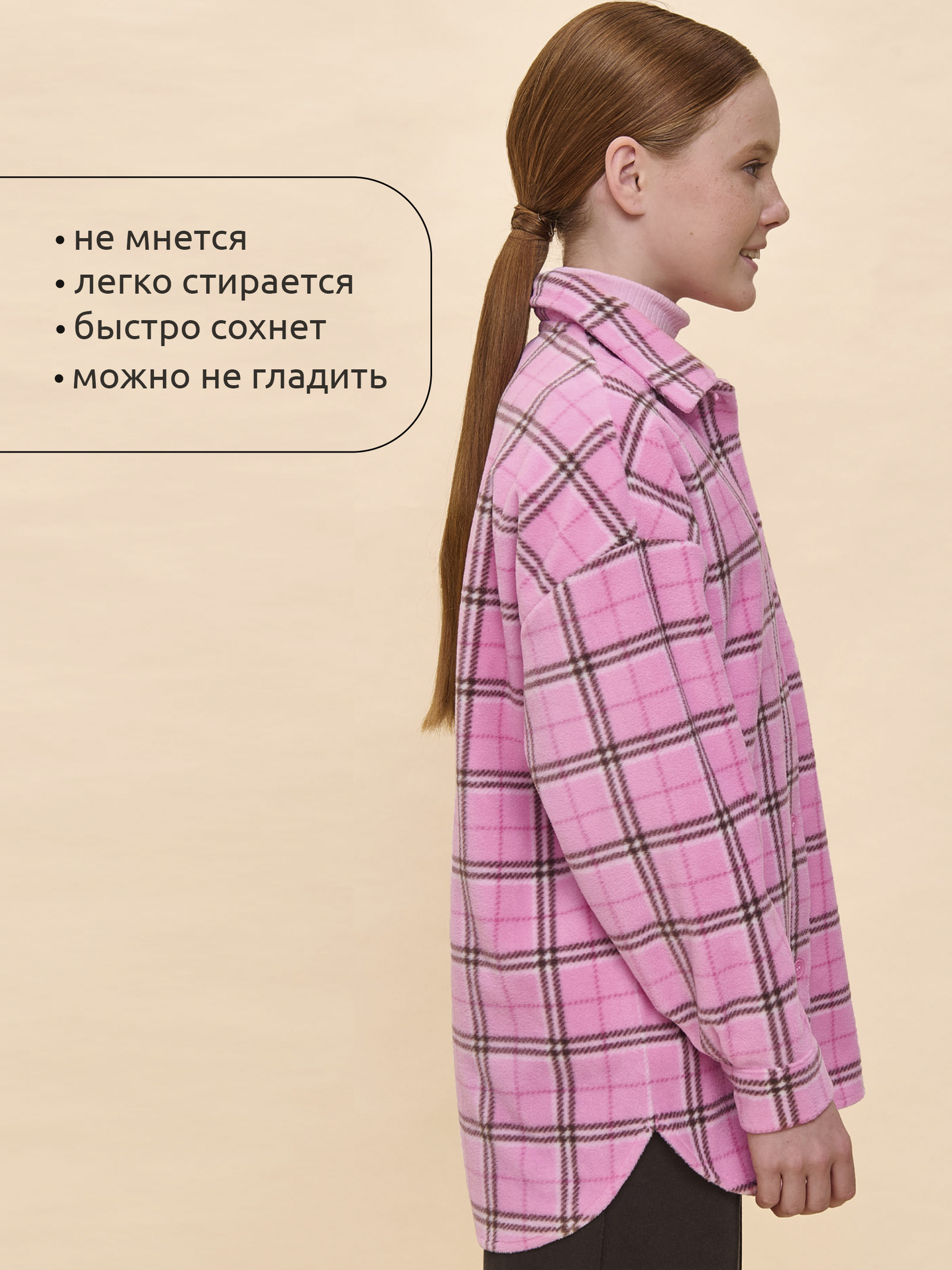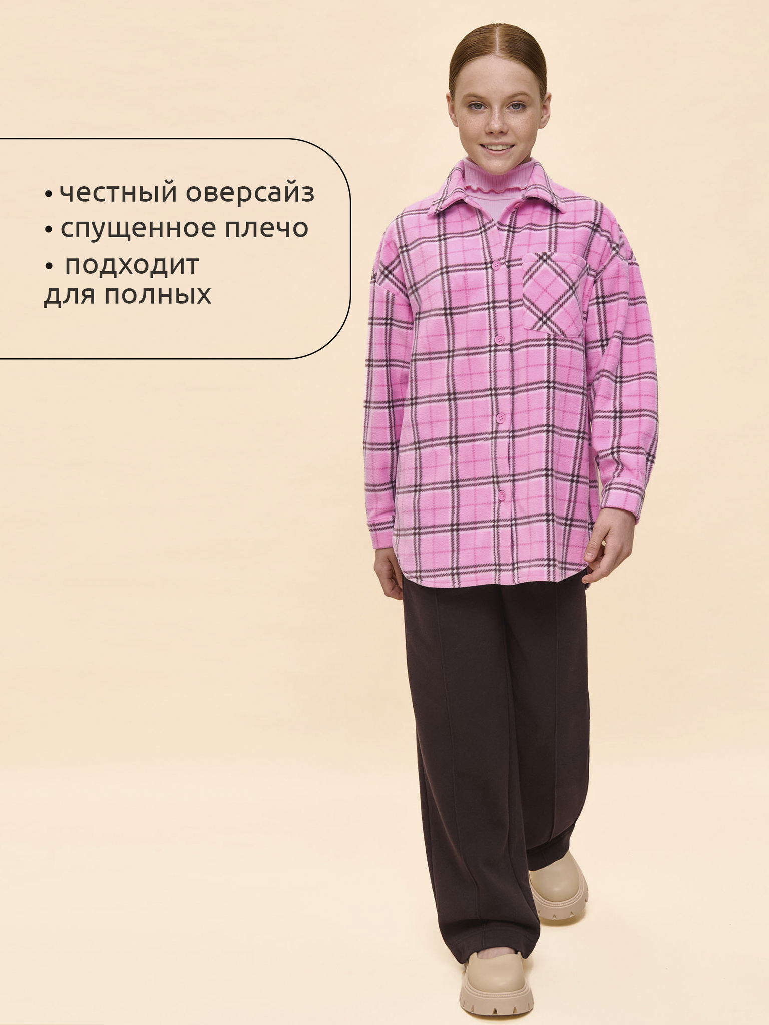 Флисовая рубашка для девочки. Объёмная рубашка с классическим отложным воротником и спущенным плечом подарит ребёнку комфорт и не будет стеснять его движений. Клетчатая рубашка оверсайз — актуальный модный тренд. Модель застёгивается на пуговицы по переду. По низу рукавов манжеты на пуговицах. По переду слева накладной карман для мелочей. Линия низа фигурная, спинка слегка длиннее переда. Изделие лаконичного дизайна, без принта. Рубашка неприхотлива в уходе. Флис тёплый, мягкий, лёгкий, просто стирается и быстро сохнет, не выгорает и не скатывается, одежда из него надолго сохраняет прекрасную форму. Рубашка оверсайз в клетку выполнена в трендовых цветах. Она легко сочетается с различными брюками, джинсами. Идеальная рубашка в клетку для детей дошкольного и младшего школьного возраста, а также подростка. Рубашка утеплённая подходит для круглогодичной носки: летом, осенью, зимой, весной и демисезон. Её можно носить в детский сад, на прогулки, отдых, а также дома. Она может заменить ветровку в начале осени или конце весны, а зимой послужит тёплым средним слоем одежды. Выбирайте нужный размер по таблице размеров на фото. Цвет товара на экране вашего устройства может отличаться от цвета изделия вживую.