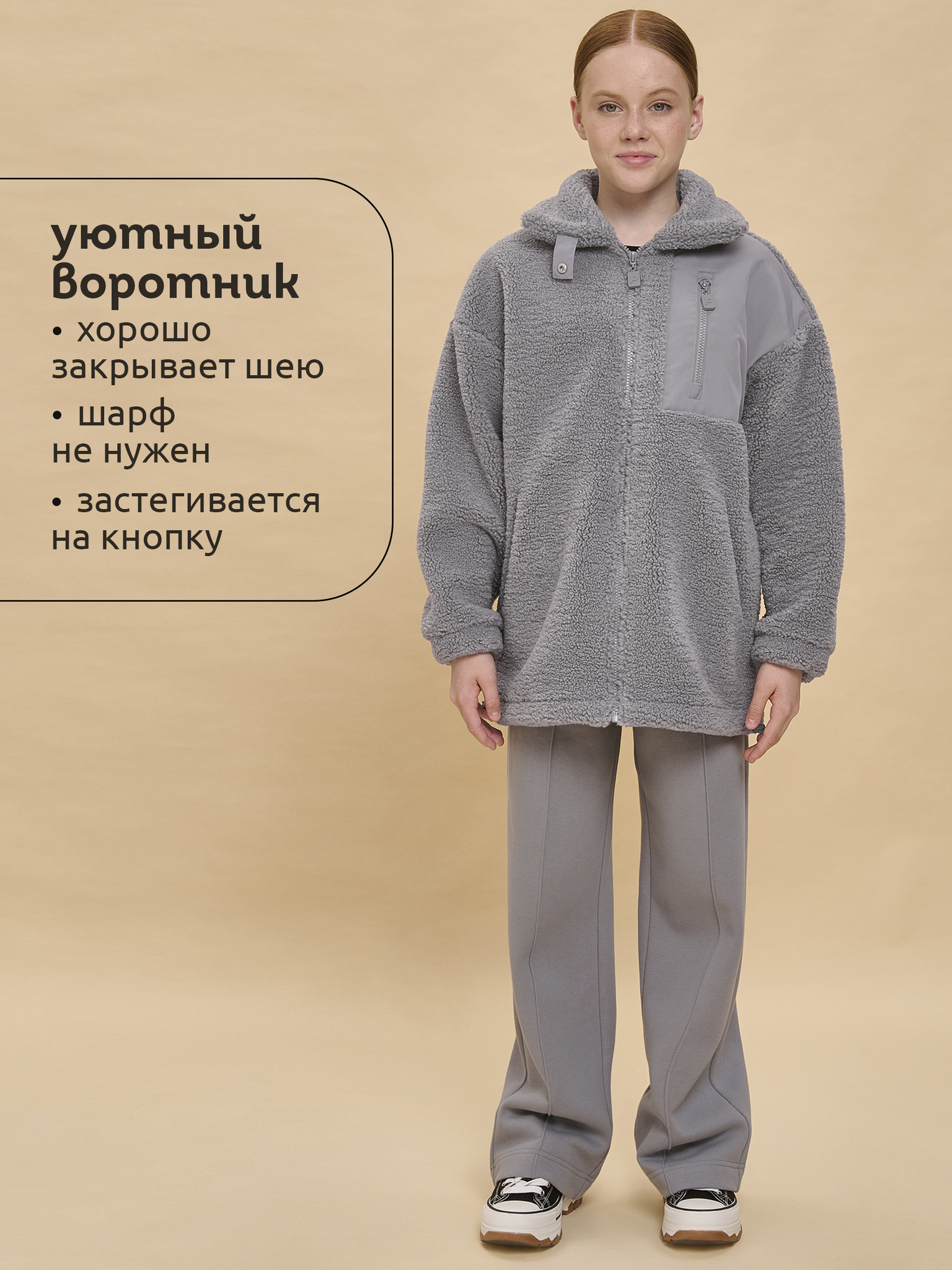 Толстовка детская для девочки. Куртка выполнена в сочетании двух материалов: бербер-флиса с мягкой фактурой «барашка» и гладкой курточной ткани. Это один из наиболее акутальных трендов сезона. Плюшевая толстовка модного оверсайз-силуэта со спущенным плечом не будет стеснять движений ребёнка, подарит ощущение комфорта и уюта. По переду застёжка на центральную молнию. Толстовка дополнена отложным воротником, который можно трансформировать с воротник-стойку с застёжкой на пату из курточной ткани с кнопкой — шея ребёнка защищена от холода и ветра. Куртка дополнена удобными прорезными карманами по бокам. Слева по переду вставка из курточного материала с прорезным карманом — стильное и практичное решение. Ткань вокруг кармана не будет мараться от частых прикосновений. По низу изделия, по бокам утяжка на эластичный шнур — можно регулировать объём. Зип-толстовка однотонная, без принта. Модель неприхотлива в уходе. В составе основного материала — толстовка тёплая, лёгкая, мягкая, просто стирается и быстро сохнет, не скатывается и сохраняет отличную форму надолго. Толстовка выполнена в трендовом фиолетовом цвете. Размерная линейка: 1 (86): 2 (92): 3 (98): 4 (104): 5 (110): 6 (116): 7 (122): 8 (128): 9 (134): 10 (140): 11 (146). Толстовка с воротником подходит для девочек дошкольного и младшего школьного возраста, а также девочек-подростков. Её можно носить в детский сад, школу, на прогулки, на отдых, спорт. Толстовка на замке идеальна для носки круглый год: прохладным летом, осенью и весной (демисезон), зимой. Она может заменить ветровку в начале осени или конце весны, а зимой послужит тёплым средним слоем одежды. Прекрасный подарок дочери, внучке или сестре на Новый год и любой другой праздник.