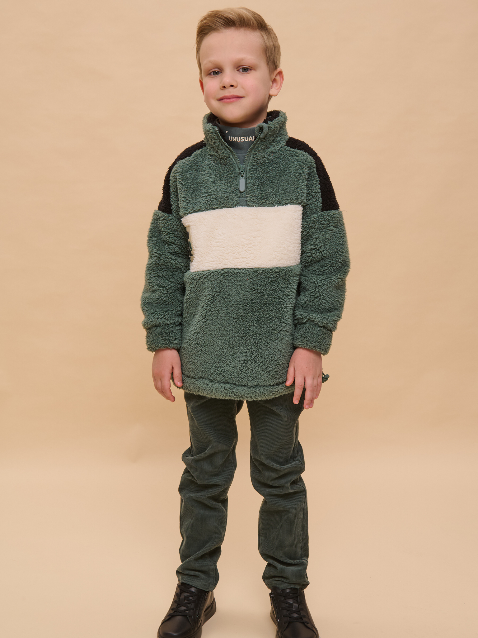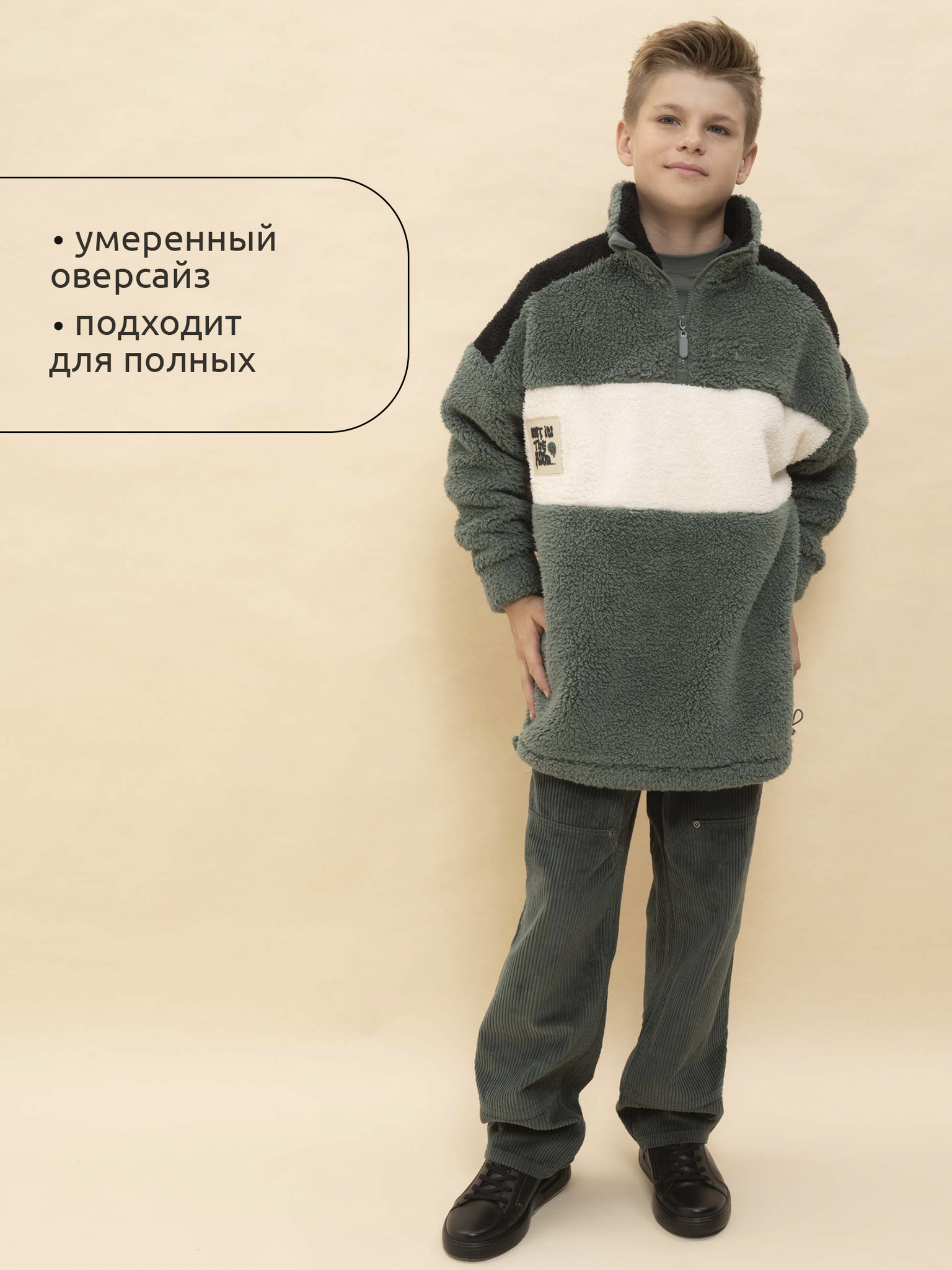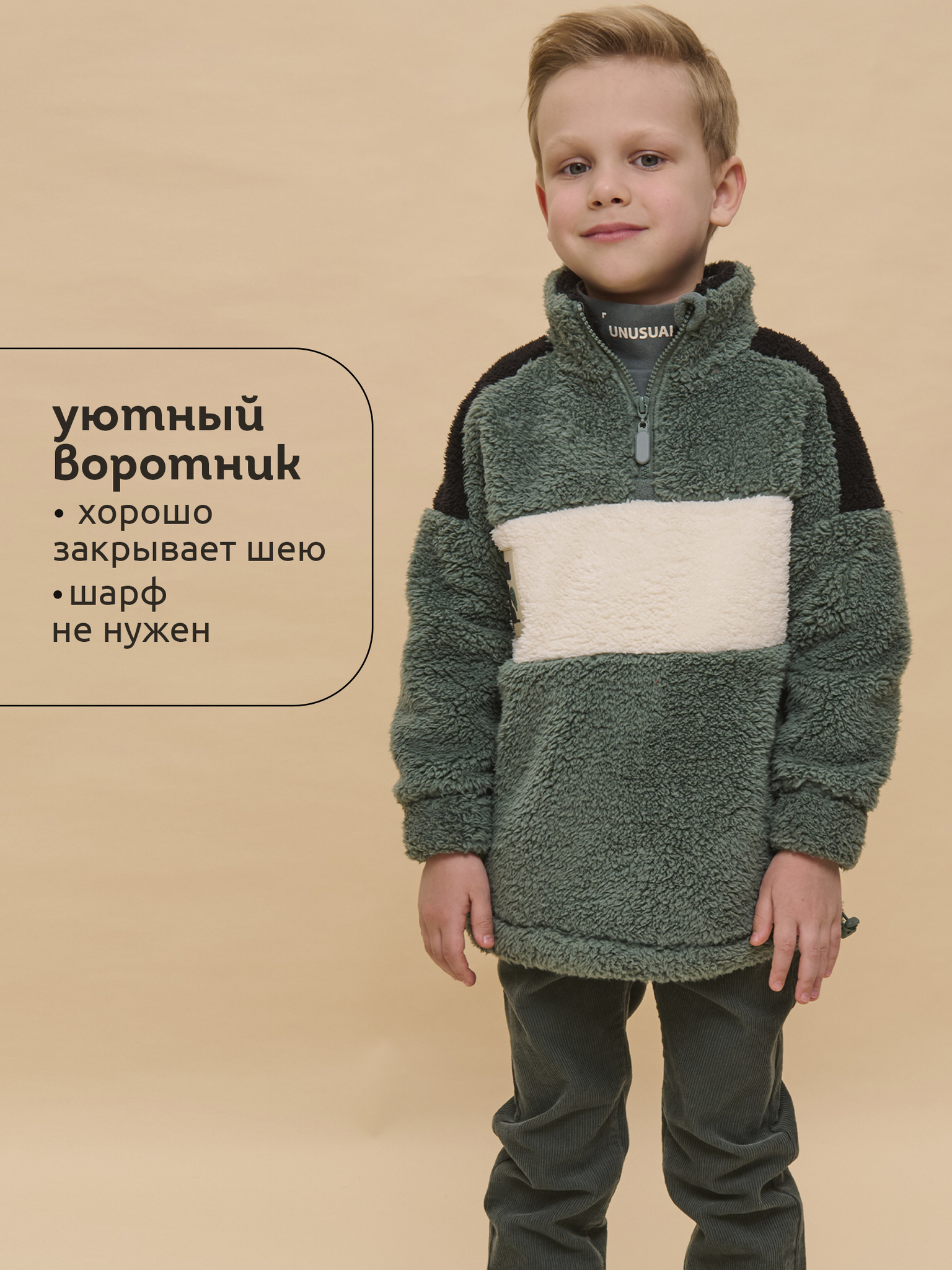 Толстовка детская для мальчиков. Трикотажная куртка увеличенного объёма из мягкого двустороннего материала берберфлис заменит ветровку в прохладную погоду. Толстовка флисовая застёгивается на короткую молнию — актуальный модный тренд. Модель выполнена из 100% полиэстера — она лёгкая, мягкая, износостойкая, просто стирается и быстро сохнет. Высокий воротник с защитным ограничителем и широкие манжеты защитят от холода и ветра. По низу куртка детская дополнена эластичным шнуром со стоперами для регулировки ширины. Толстовка для мальчика на молнии декорирована контрастными вставками по переду, плечам и внутренней части воротника. Уютная и стильная куртка для мальчика неприхотлива в уходе. Помните о правильном уходе за изделием: рекомендуется стирать при температуре не выше 30 °C, без предварительного замачивания, с изнанки. Это поможет сохранить качество и цвет куртки на длительное время. Не забывайте о выборе правильного размера. Используйте таблицу размеров на фотографии, чтобы выбрать подходящий вариант для вашего мальчика. Обратите внимание, что цвет товара на экране вашего устройства может отличаться от реального.