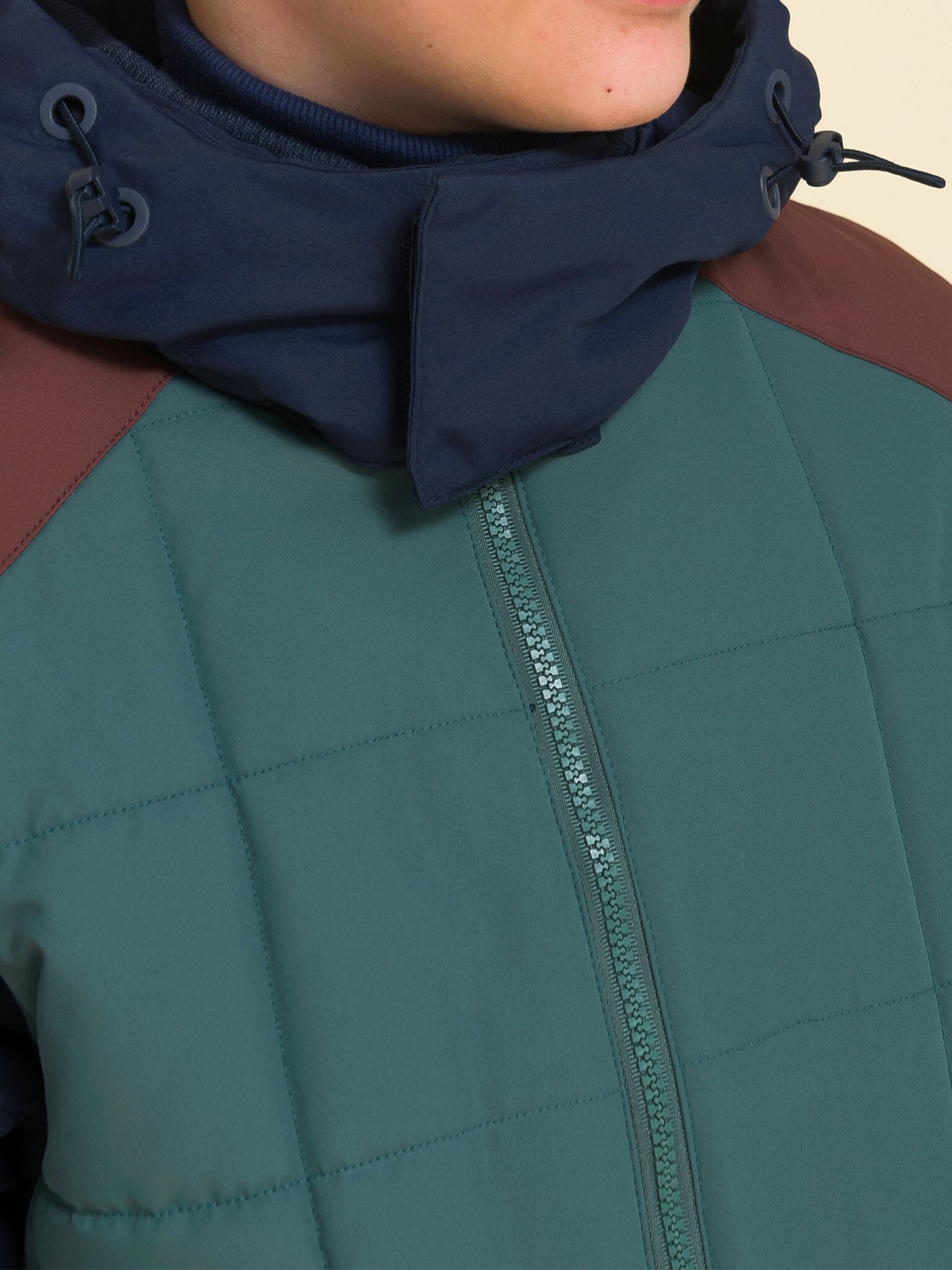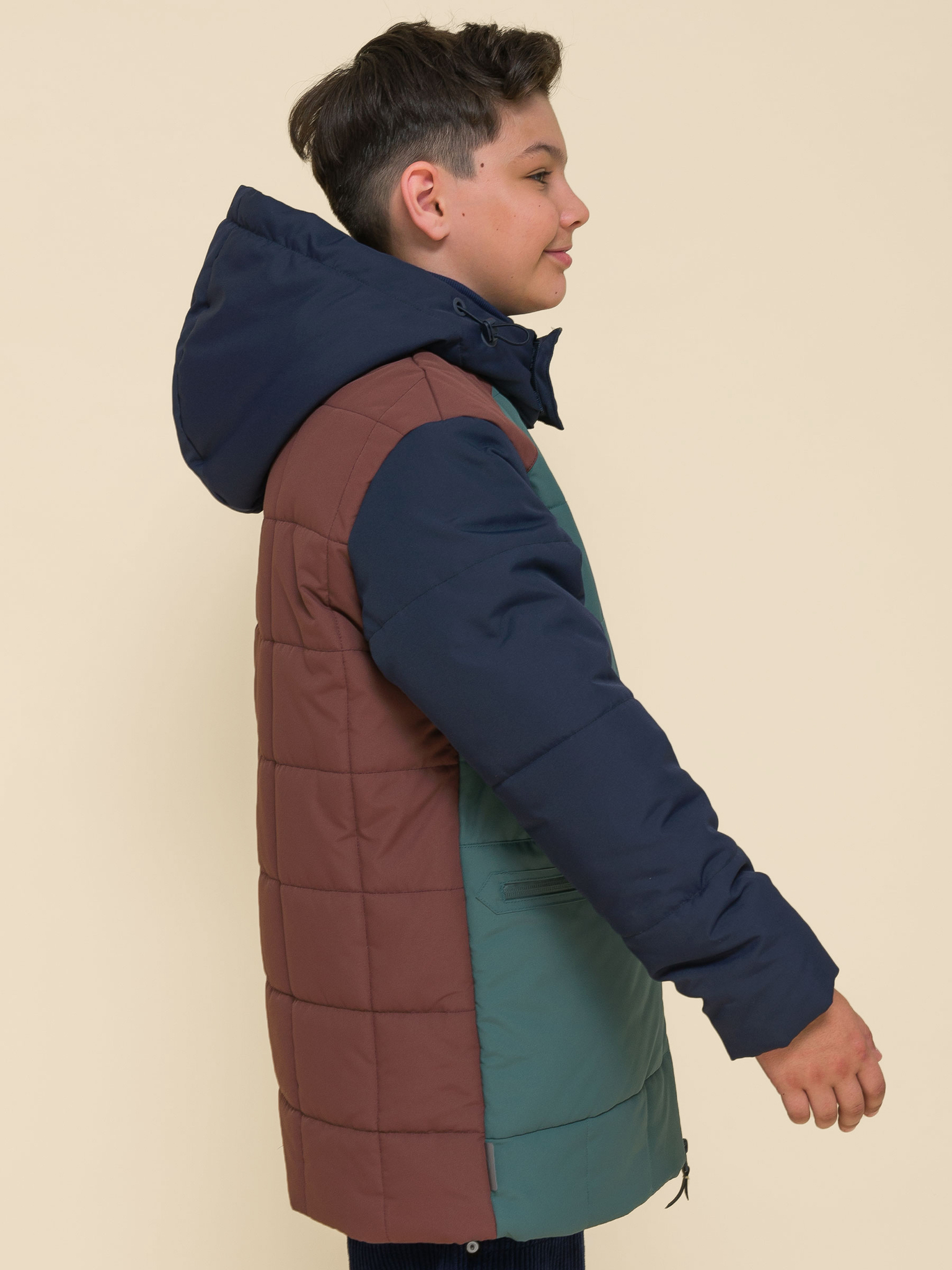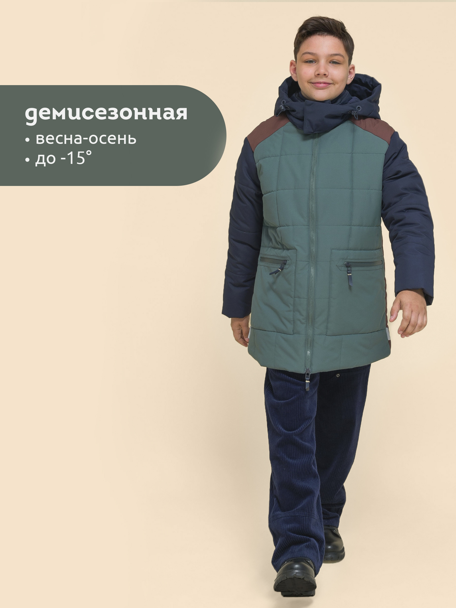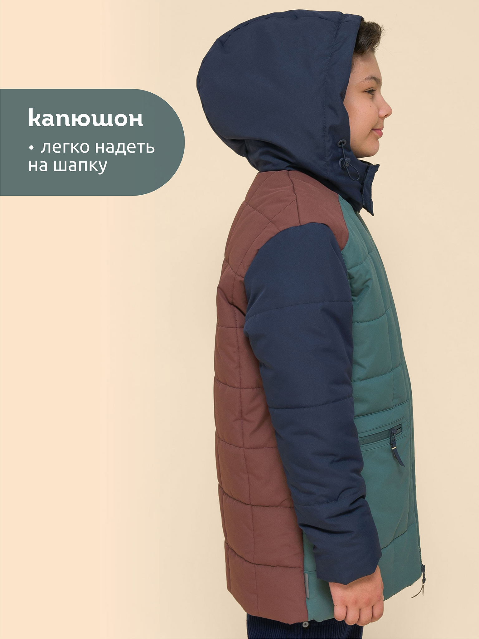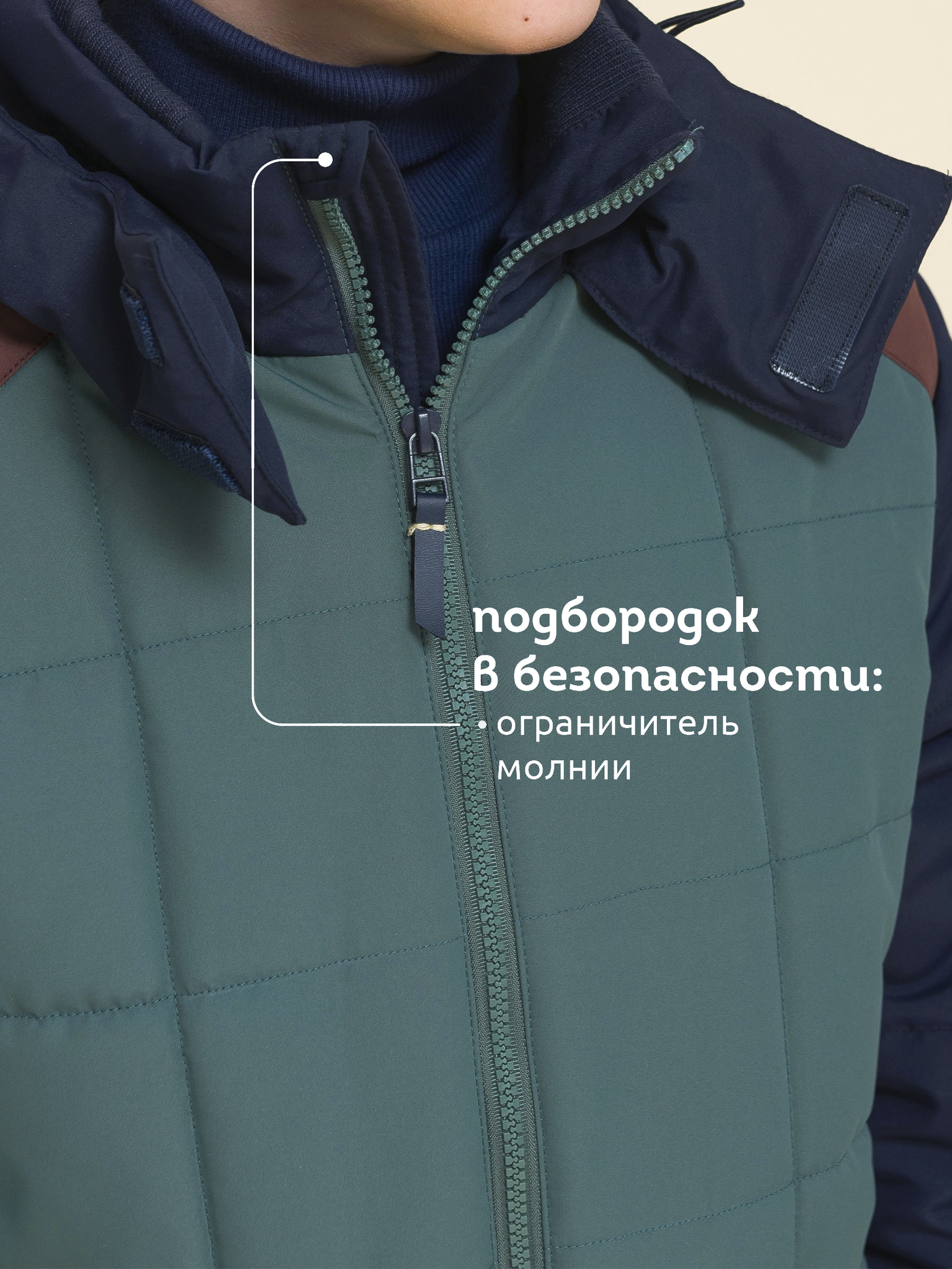Куртка детская демисезонная на синтепоне для мальчиков, прямого силуэта. Изделие выполнено из курточной ткани с водоотталкивающим покрытием — ребёнок не промокнет под дождём. Капюшон двухшовный, что обеспечивает анатомически правильную форму и комфортную посадку по голове. Капюшон не отстегивается, застёгивается на липучки (велкро) — ребёнку просто застёгивать и расстёгивать. Предусмотрена регулировка объема эластичными шнурами с пластиковыми стопперами. Центральная застёжка на пластиковую тракторную молнию, разъёмную с двух сторон — удобно садиться, пуллеры металлические, прочные. Куртка тёплая — дополнительно, для защиты от ветра и холода, центральная молния с изнаночной стороны закрыта ветрозащитной планкой. По низу рукавов внутренние трикотажные манжеты — они препятствуют задуванию ветра. На переде и спинке выполнена декоративная стёжка — актуальный тренд. Изюминка куртки — накладные карманы с водонепроницаемой молнией со скрытыми звеньями, которая вставлена в фигурную рамку. Содержимое карманов не пострадает от дождя. По низу изделия предусмотрена регулировка объёма на эластичный шнур с пластиковыми фиксаторами. В каждой куртке нейм-лейбл! Ребенок не потеряется и не потеряет куртку! В боковых швах и на спинке расположены светоотражающие элементы — безопасность в тёмное время суток. За изделием просто ухаживать. Модель без принта. Куртка выполнена из полиэстера — она тёплая, легко стирается, быстро сохнет, сохраняет отличную форму и цвет надолго. Подкладка из хлопкового трикотажа (100% высококачественного хлопка) в капюшоне и по стану — он мягкий, приятный на ощупь. В рукавах подкладка из полиэстера — благодаря этому ребенку легко надевать куртку, руки не путаются в рукавах. Внутренний воротник и манжеты рукавов из эластичной рибаны (ткань в рубчик из хлопка) — куртку удобно снимать и надевать, рибана приятна на ощупь и при этом надолго сохраняет эластичность, не теряет форму. Куртка выполнена из материала трех цветов, основной цвет — зелёный. Её легко сочетать с различными брюками. Размерный ряд: 2 (92): 3 (98): 4 (104): 5 (110): 6 (116): 7 (122): 8 (128): 9 (134): 10 (140): 11 (146). Прекрасная куртка на мальчика дошкольного и младшего школьного возраста, а также подростка. Идеальная куртка на осень и весну (демисезон). Рекомендуемый температурный режим: не ниже минус 15 градусов. Утеплитель: синтепон 200 г/м2. Модель подходит для носки в детский сад, школу, для прогулок и отдыха. Куртка водоотталкивающая утеплённая — отличный подарок для сына или внука на любой праздник.