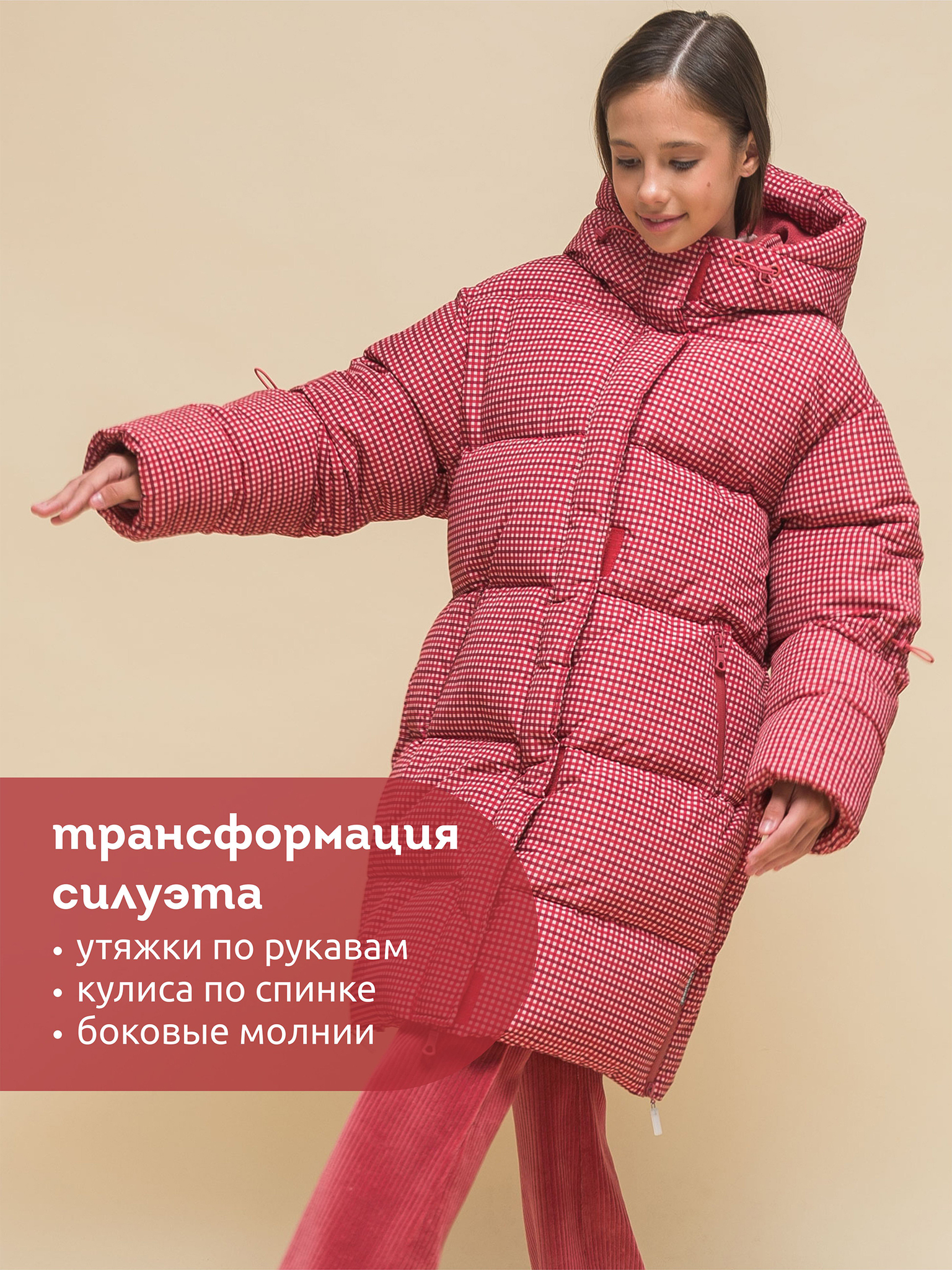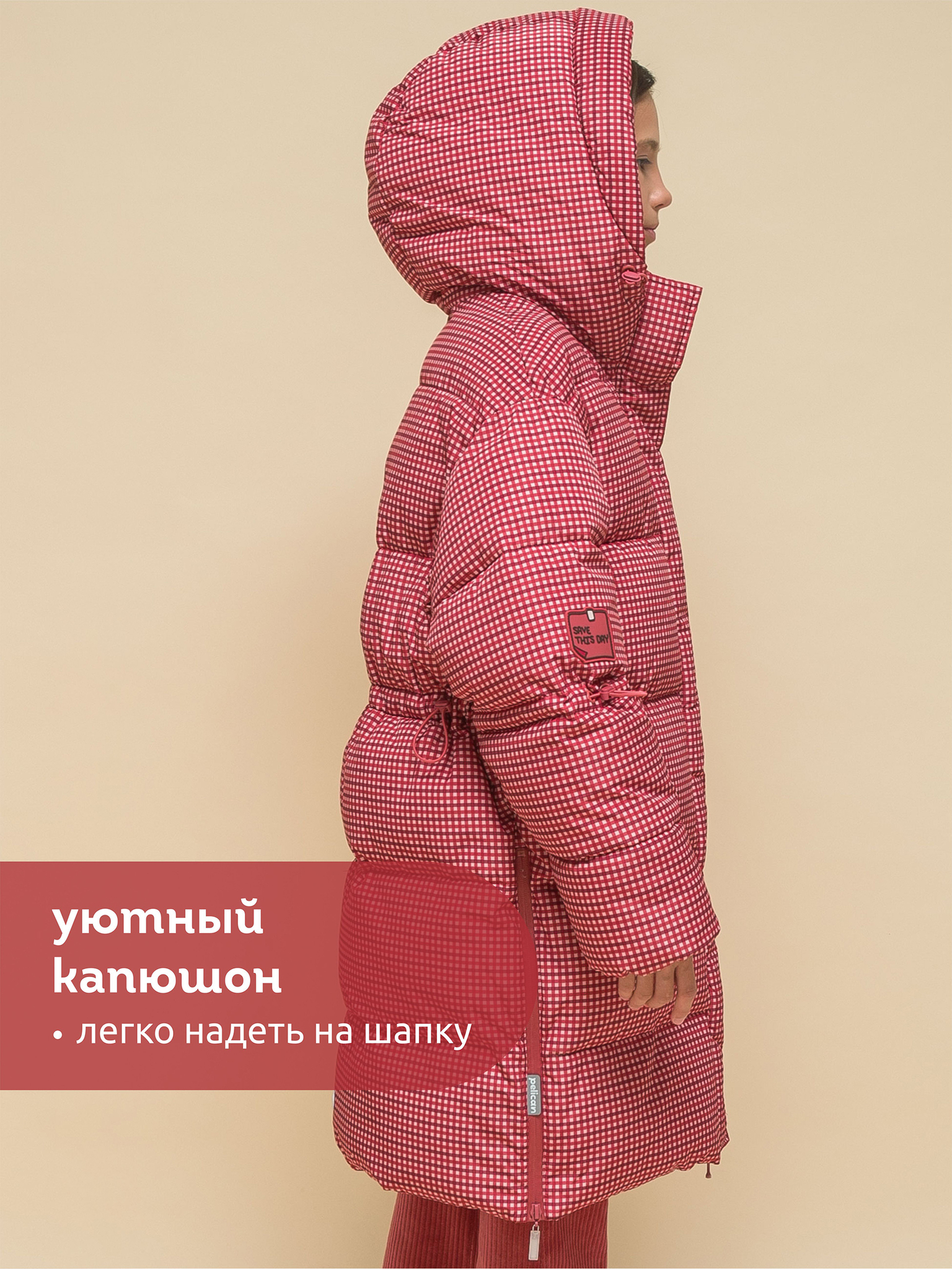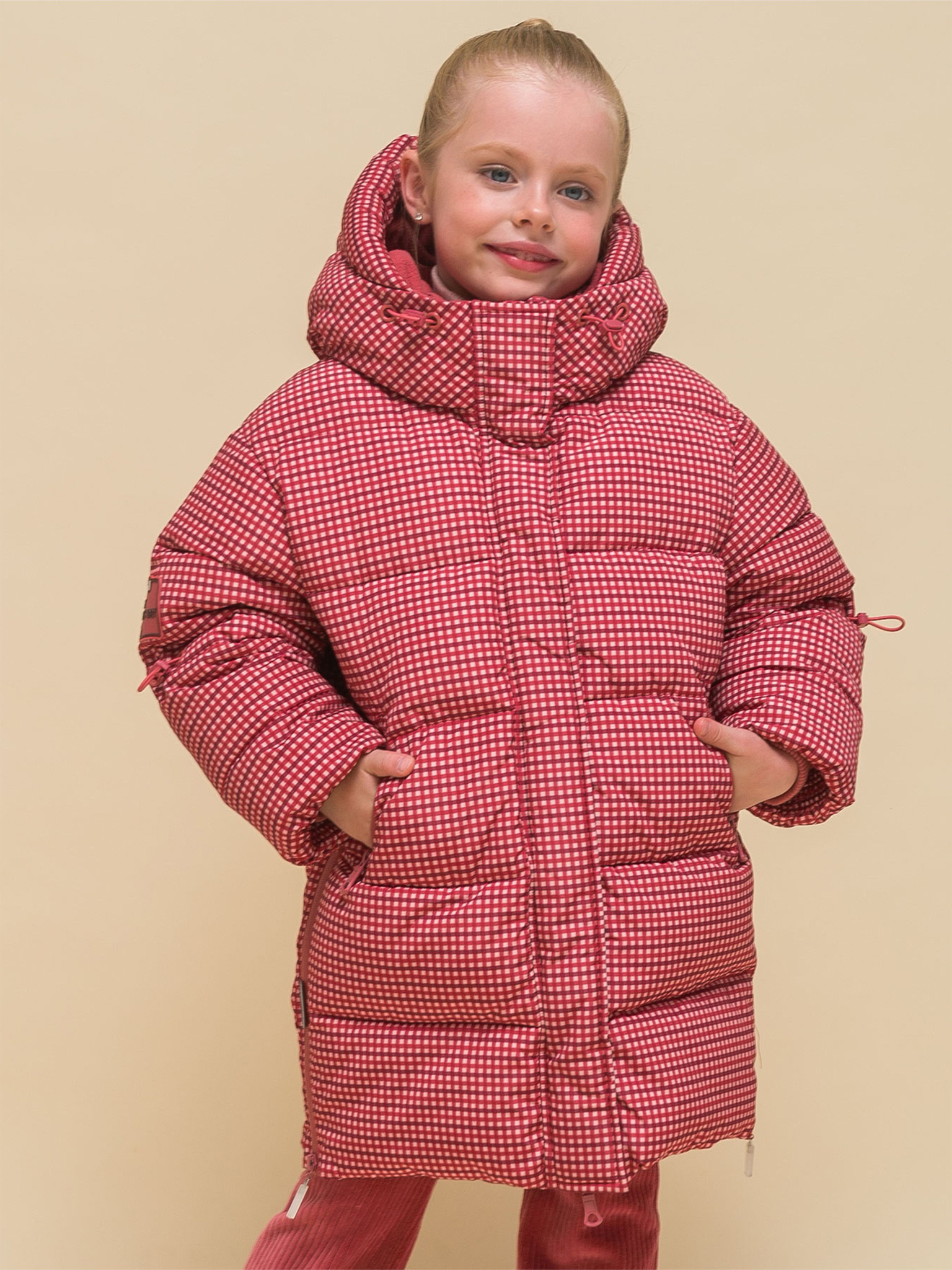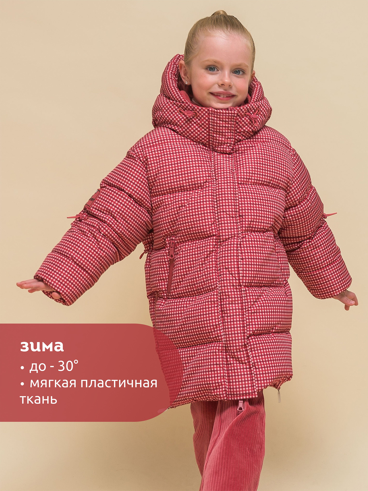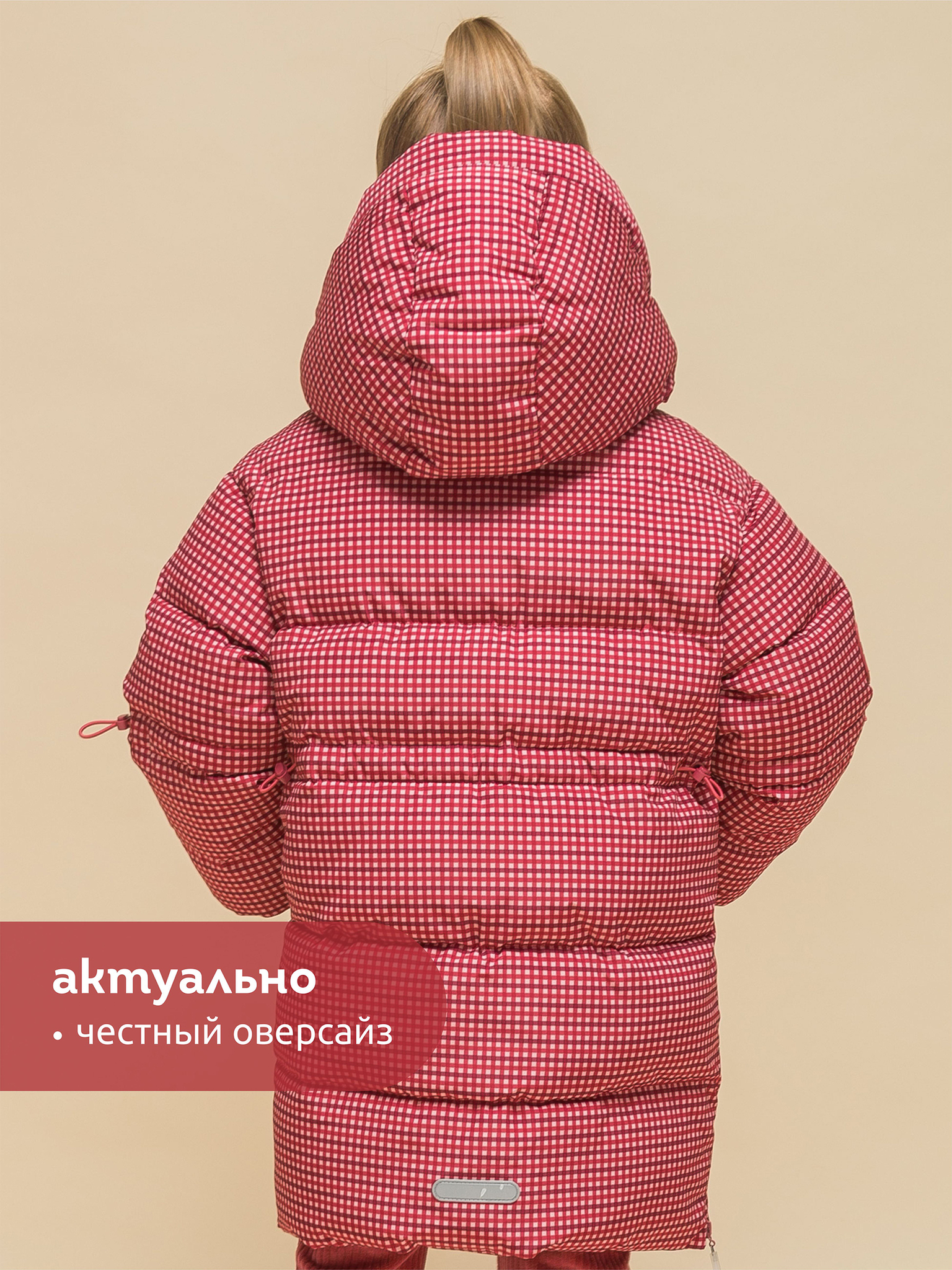 Пальто зимнее для девочки. На внешнюю поверхность материала нанесена водоотталкивающая пропитка (DWR), она задерживает грязь и влагу снаружи — ребёнок не промокнет. Также есть дополнительная пропитка на внутренней стороне ткани. Пальто актуального оверсайз-силуэта подходит для всех типов фигуры. Капюшон двухшовный, что обеспечивает анатомически правильную форму и комфортную посадку по голове. Капюшон не отстегивается, есть регулировка объема эластичными шнурами с пластиковыми стопперами. Внутренние манжеты рукавов из эластичной рибаны (ткань в рубчик) — дополнительная защита от ветра и холода. Ширина горловины позволяет надевать свитер с объемным воротником или объёмный шарф. Центральная застёжка на тракторную молнию с двумя пуллерами — удобно садиться. Тканевый стоппер защищает подбородок от зажима молнией. Фиксирующая строчка предохраняет планку от «заедания» в процессе застёгивания. Куртка-пальто тёплая — дополнительно, для защиты от ветра и холода, центральная молния закрыта ветрозащитной планкой на липучках (велькро). Высокотехнологичные липучки нового образца не цепляются к одежде и не нуждаются в постоянной чистке от ворсинок. Внутренняя кулиска по талии со стороны спинки и рукавам позволяет регулировать объём и менять силуэт изделия. В боковых швах вставлены застёжки-молнии для возможности увеличения ширины по низу изделия. На рукаве модель украшает силиконовая нашивка, надпись переводится: «Сохрани этот день». Пальто стёганое дополнено прорезными карманами на молнии — удобно пользоваться. Карманы с боковым входом закрываются на водонепроницаемую молнию со скрытыми звеньями — их содержимое не промокнет. Внутри карманы утеплены мягким флисом. В каждой куртке нейм-лейбл! Ребёнок не потеряется и не потеряет куртку! На спинке и в боковых швах расположены светоотражающие элементы — безопасность в тёмное время суток. За изделием просто ухаживать. Пальто в клетку - тренд сезона. Куртка выполнена из полиэстера — она тёплая, не промокает, легко стирается, быстро сохнет, сохраняет отличную форму и цвет надолго. Подкладка из мягкого, тёплого и дышащего флиса (по стану, внутреннему воротнику и в капюшоне). В рукавах подкладка из тонкого полиэстера — благодаря этому ребенку легко надевать куртку, руки не путаются в рукавах. Пуховик выполнен в модном красном цвете. Он легко комбинируется с различными брюками, юбками, колготками. Размерная линейка: 3 (98): 4 (104): 5 (110): 6 (116): 7 (122): 8 (128): 9 (134): 10 (140): 11 (146). Пальто оверсайз подходит для маленьких девочек дошкольного и младшего школьного возраста, а также девочек-подростков. Рекомендуемый температурный режим: не ниже минус 30 градусов. Утеплитель: экопух. В рукавах дополнительный слой тонкого синтепона. Модель идеальна для носки в детский сад, школу, для прогулок и отдыха. Зимнее пальто для девочки — прекрасный подарок для дочери или внучки на Новый год или любой другой праздник.