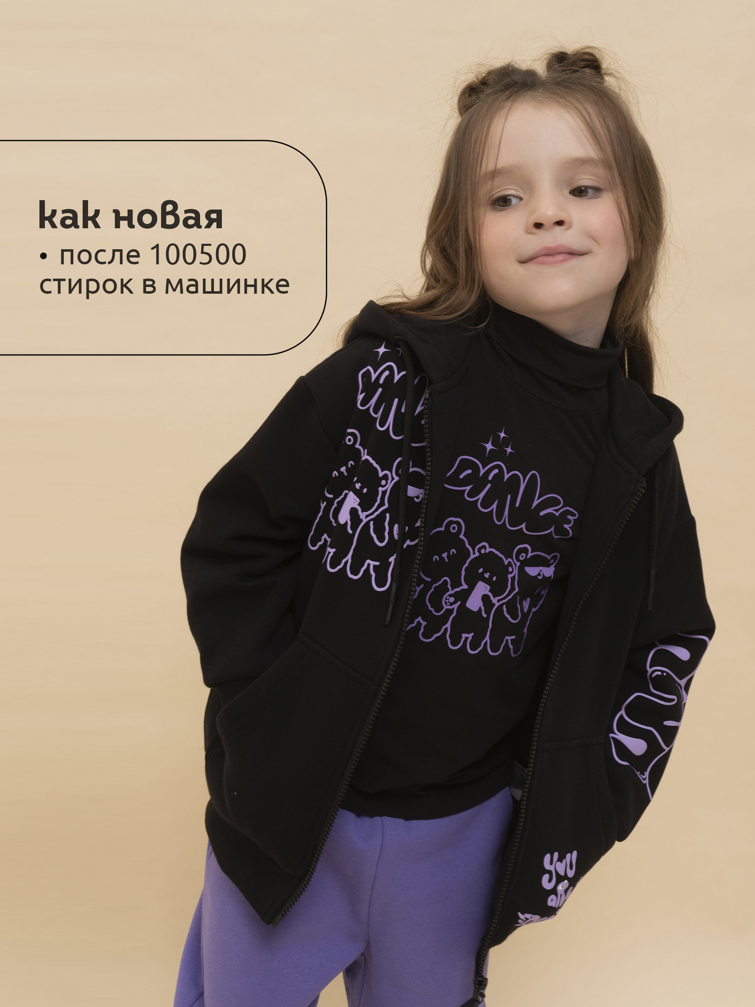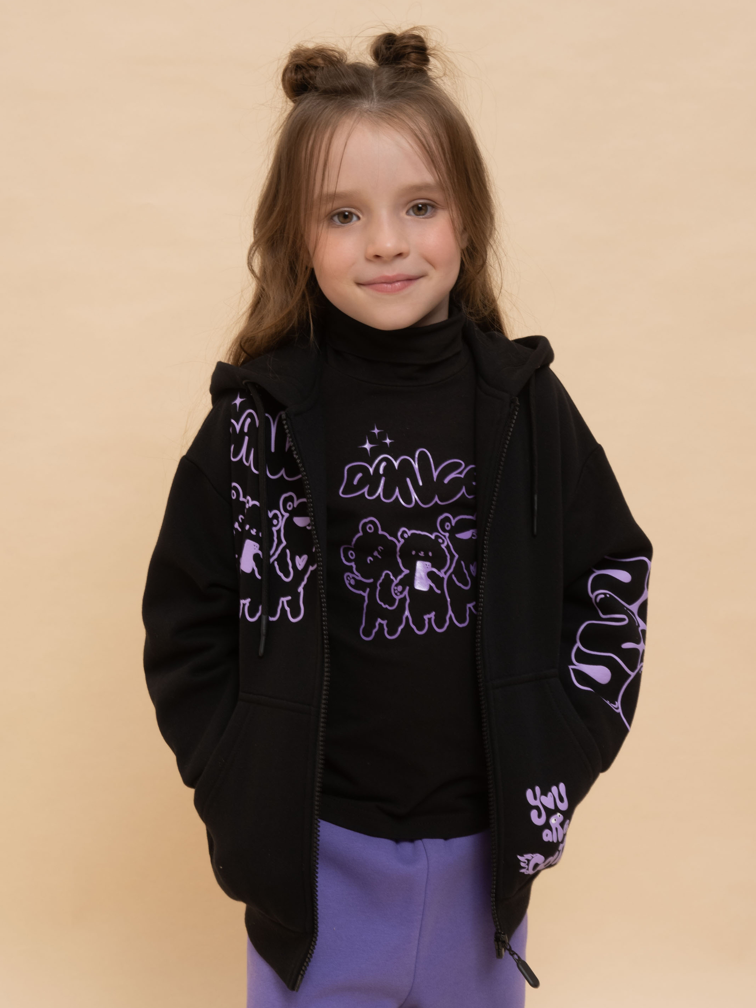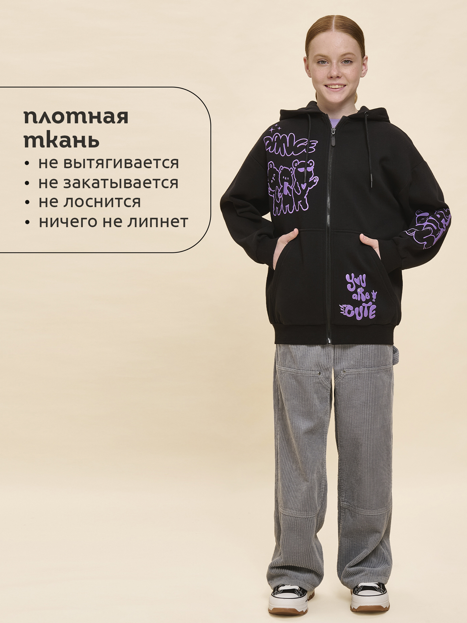 Худи зипка для девочек. Супертрендовая трикотажная куртка оверсайз из футера с начёсом — отличная альтернатива ветровке в прохладную погоду. Толстовка детская застёгивается на центральную молнию. В составе ткани преобладает хлопок — зипка мягкая, приятная на ощупь и хорошо пропускает воздух. Полиэстер обеспечивает изделию прочность и долговечность. Регулируемый капюшон и манжеты из эластичной рибаны по рукавам и низу защитят от холода и ветра. По переду куртка детская дополнена объёмными накладными карманами. Зипка — базовый элемент для детского и подросткового гардероба. Легко сочетается с джинсами, спортивными брюками и брюками карго. Толстовка на молнии для девочки декорирована модными тактильными пуфф-принтами. Надписи переводятся: «танцуй», «ты милая». Принты эластичные и стойкие, без проблем переносят частные стирки. Куртка выполнена в универсальных оттенках, которые легко сочетаются с одеждой разных цветов. Стильная и практичная худи на молнии для девочки неприхотлива в уходе. Помните о правильном уходе за изделием: рекомендуется стирать при температуре не выше 30 °C, без предварительного замачивания, с изнанки. Это поможет сохранить качество и цвет куртки на длительное время. Не забывайте о выборе правильного размера. Используйте таблицу размеров на фотографии, чтобы выбрать подходящий вариант для вашей девочки. Обратите внимание, что цвет товара на экране вашего устройства может отличаться от реального.