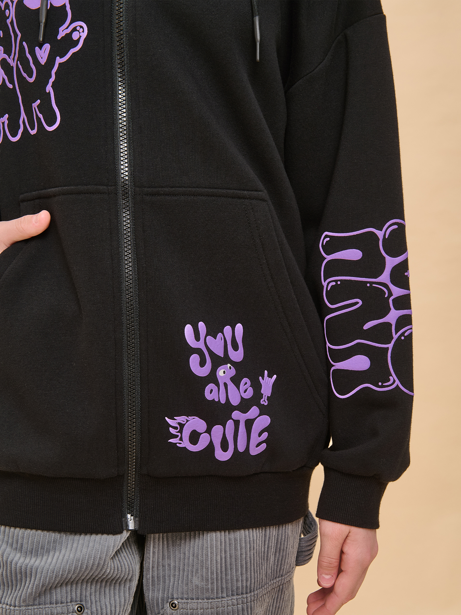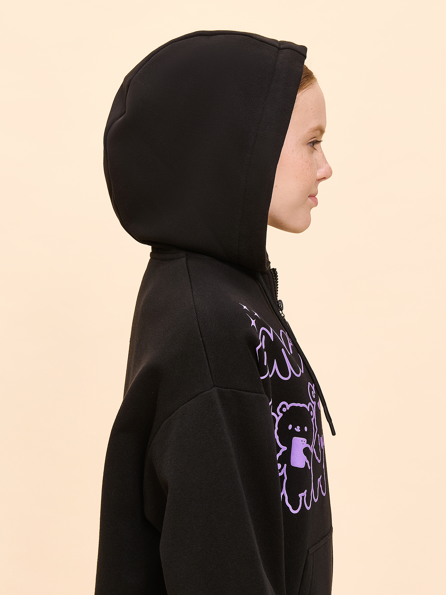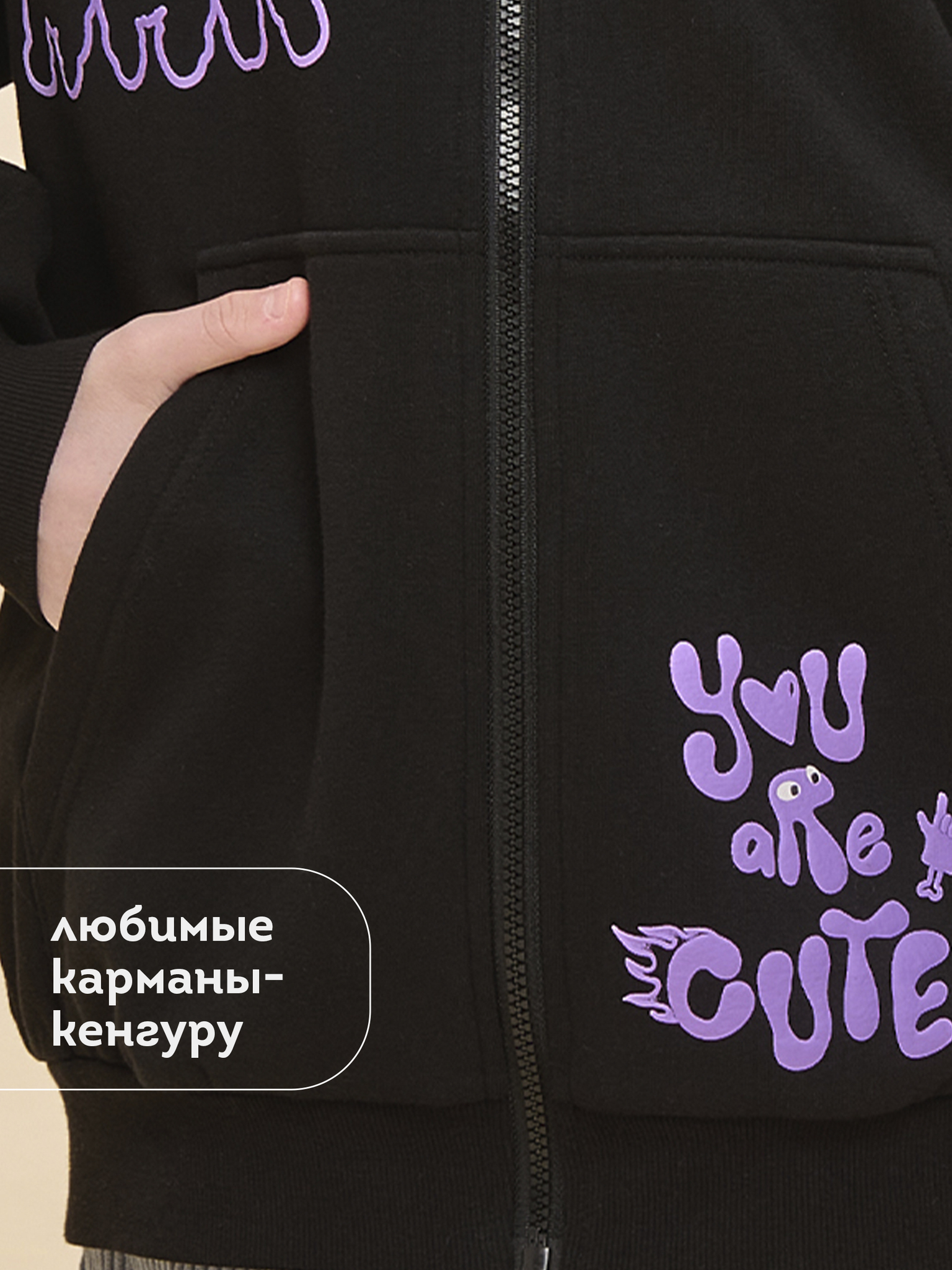 Худи зипка для девочек. Супертрендовая трикотажная куртка оверсайз из футера с начёсом — отличная альтернатива ветровке в прохладную погоду. Толстовка детская застёгивается на центральную молнию. В составе ткани преобладает хлопок — зипка мягкая, приятная на ощупь и хорошо пропускает воздух. Полиэстер обеспечивает изделию прочность и долговечность. Регулируемый капюшон и манжеты из эластичной рибаны по рукавам и низу защитят от холода и ветра. По переду куртка детская дополнена объёмными накладными карманами. Зипка — базовый элемент для детского и подросткового гардероба. Легко сочетается с джинсами, спортивными брюками и брюками карго. Толстовка на молнии для девочки декорирована модными тактильными пуфф-принтами. Надписи переводятся: «танцуй», «ты милая». Принты эластичные и стойкие, без проблем переносят частные стирки. Куртка выполнена в универсальных оттенках, которые легко сочетаются с одеждой разных цветов. Стильная и практичная худи на молнии для девочки неприхотлива в уходе. Помните о правильном уходе за изделием: рекомендуется стирать при температуре не выше 30 °C, без предварительного замачивания, с изнанки. Это поможет сохранить качество и цвет куртки на длительное время. Не забывайте о выборе правильного размера. Используйте таблицу размеров на фотографии, чтобы выбрать подходящий вариант для вашей девочки. Обратите внимание, что цвет товара на экране вашего устройства может отличаться от реального.